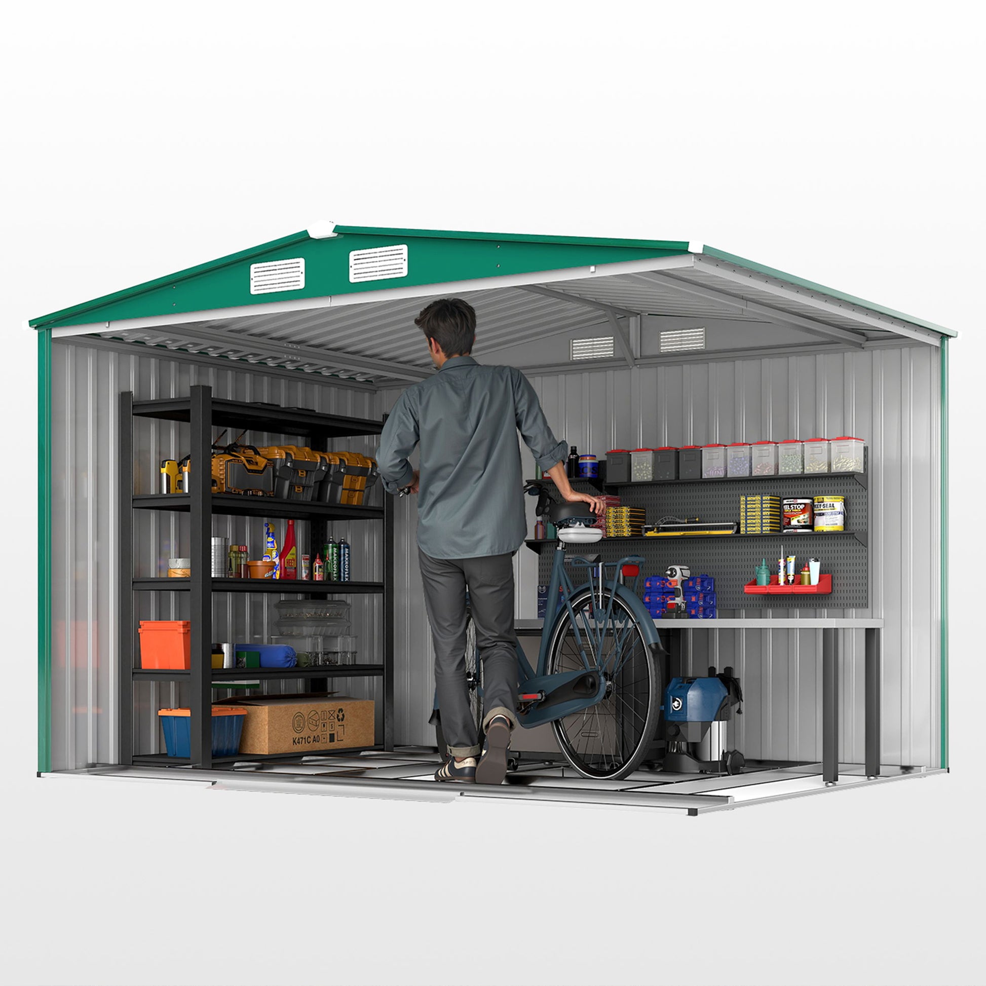 - - POCINČANI ČELIK: Skladište izrađeno od pocinčanog čelika s premazom protiv korozije za dugotrajnu vanjsku upotrebu. Čvrsta konstrukcija s osnovom od pocinčanog čelika za niže učvršćenje (pod nije uključen). Svi dijelovi dolaze unaprijed izrezani i unaprijed bušeni.