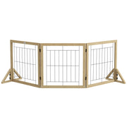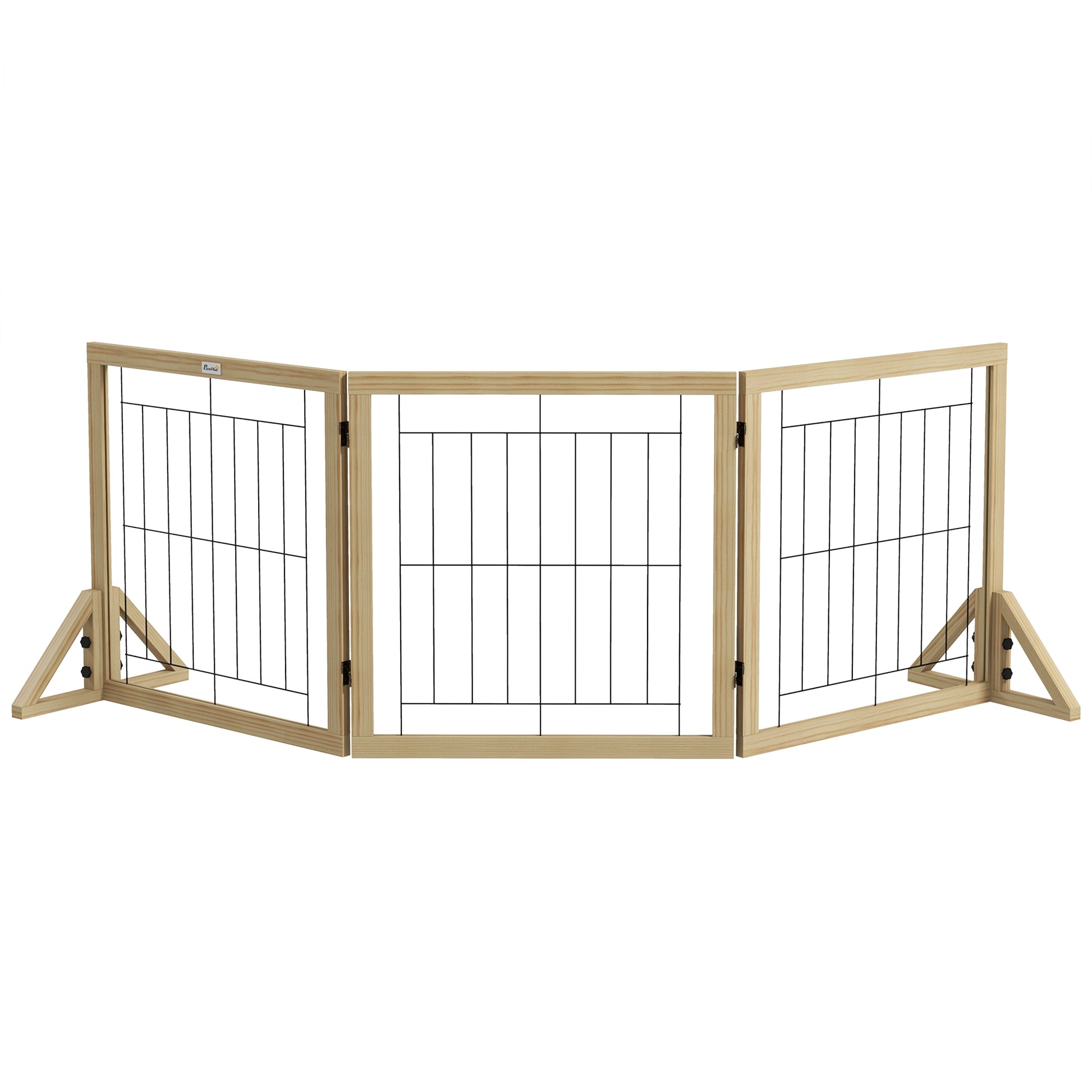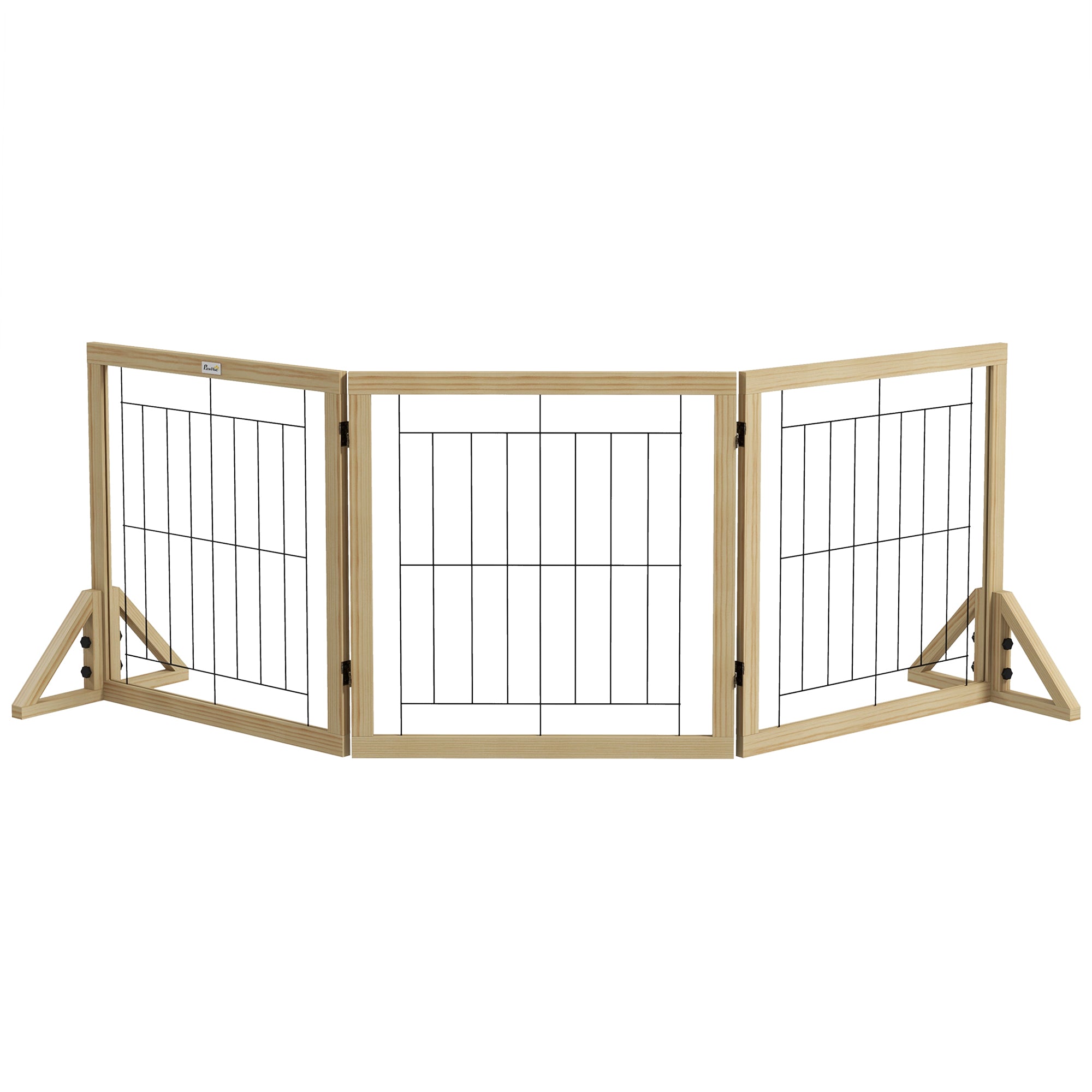 PawHut drvena prepreka za pse 210x70 cm preklopna 3 panela s dvosmjernim preklopom i trokutastim potpornim nogama za vrata, hodnike i stepenice - prirodno drvo