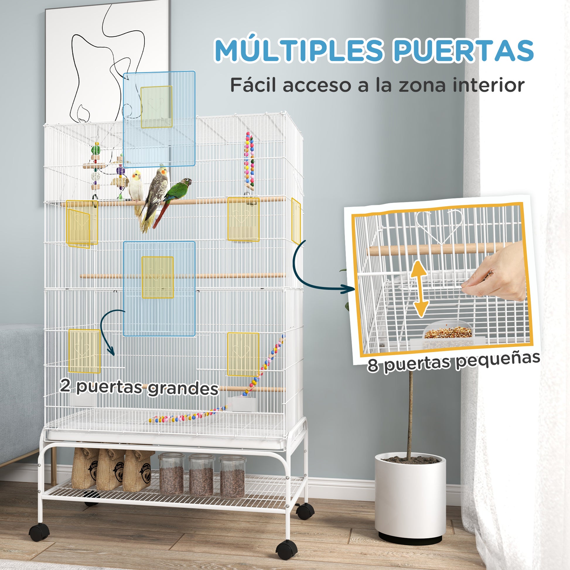 - - PRAKTIČAN DIZAJN I JEDNOSTAVNA UPOTREBA: S dva velika vrata i osam malih, ovaj kavez za ptice omogućuje jednostavan pristup. Njegova izvlačna ladica omogućuje brzo čišćenje, dok donja polica pruža mjesto za pohranu opreme i održavanje svih stvari organizirano