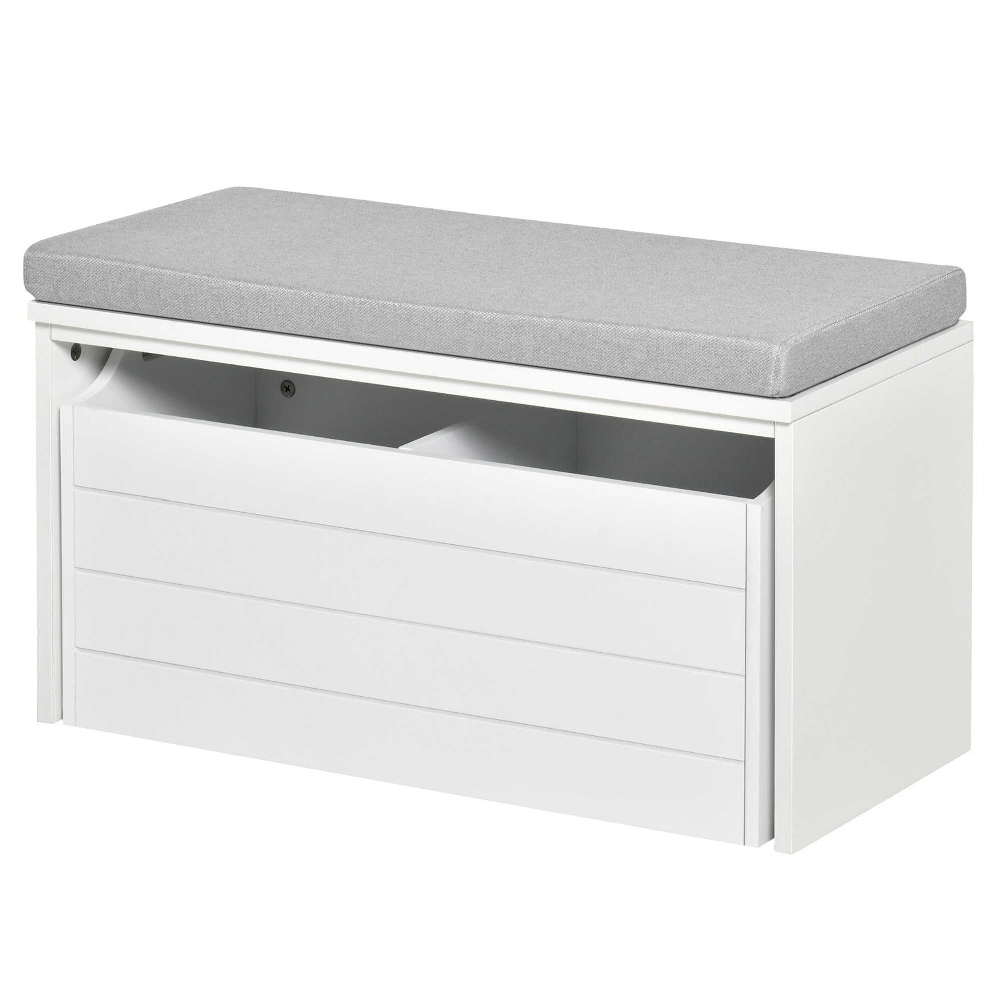 HOMCOM Tároló Pad Szürke Párnával - Cipőszekrény - Cipőpad Nagy Kettős Rekeszsorral - Fehér MDF