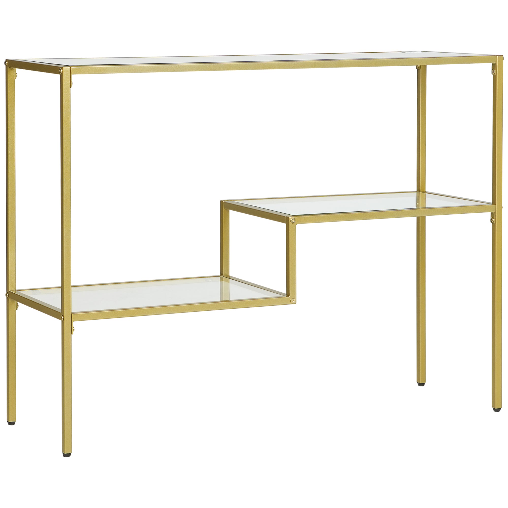HOMCOM 3-polcos Előszobai Konzol Asztal Acélból és Edzett Üvegből, 100x32x76 cm, Arany