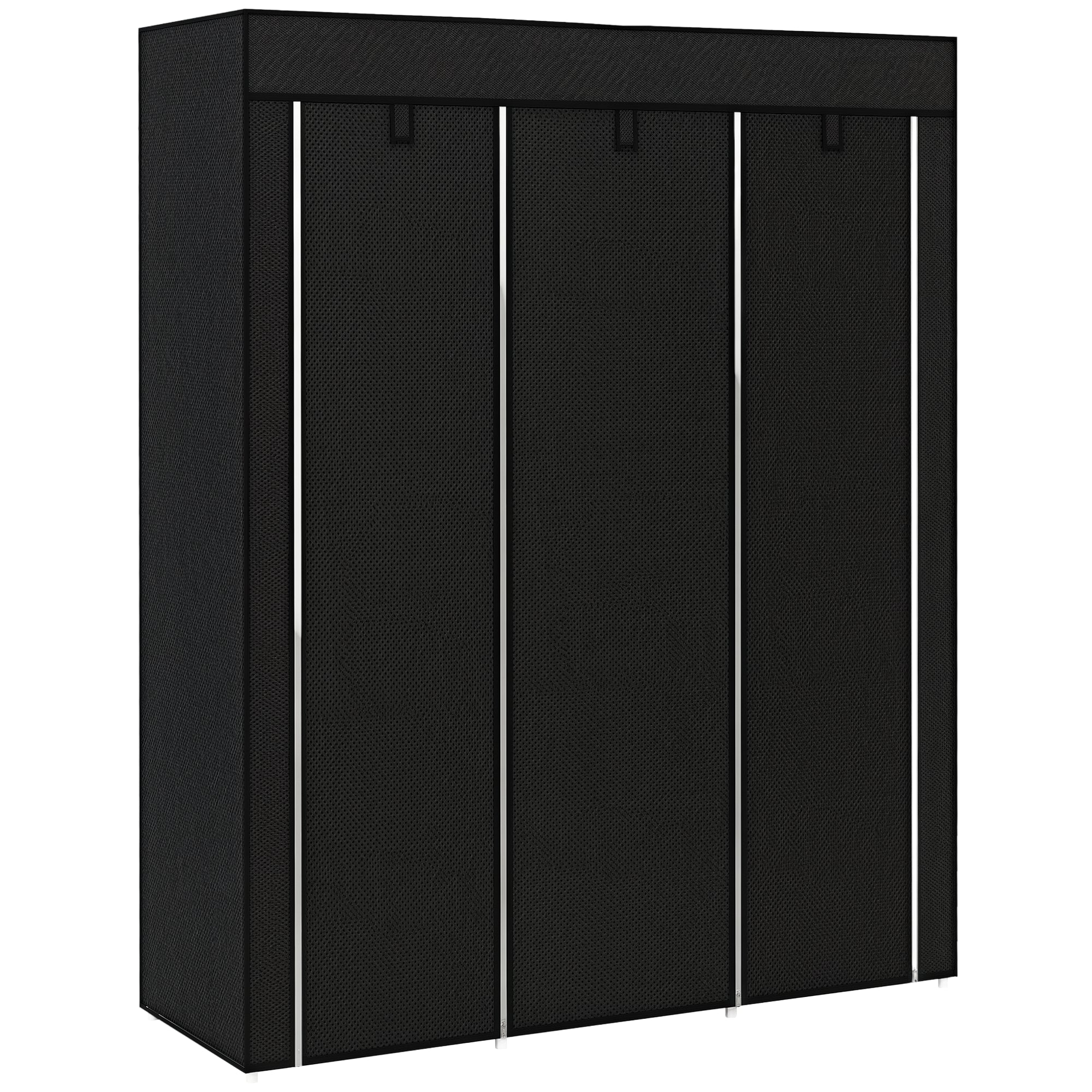 HOMCOM Szövet Szekrény, Ruhásszekrény Akasztórúddal, 8 Polccal, Összecsukható Szekrény, Hajtható Ruhásszekrény Hálószobába, Előszobába, Nem Szőtt Szövetből, Fekete, 125 x 43 x 162,5 cm