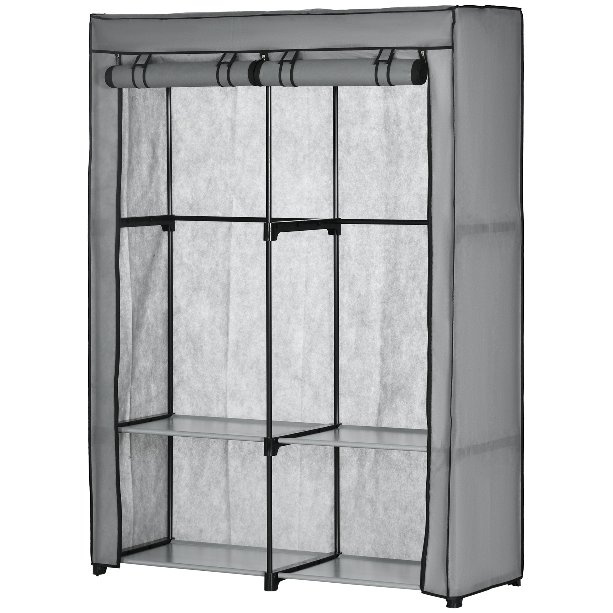 HOMCOM Szövet Szekrény 2 Ruharúddal, 4 Polccal és Cipzárral, Összecsukható Szövet Ruhásszekrény Hálószobába, Öltözőbe, 118 x 49 x 170 cm, Világosszürke