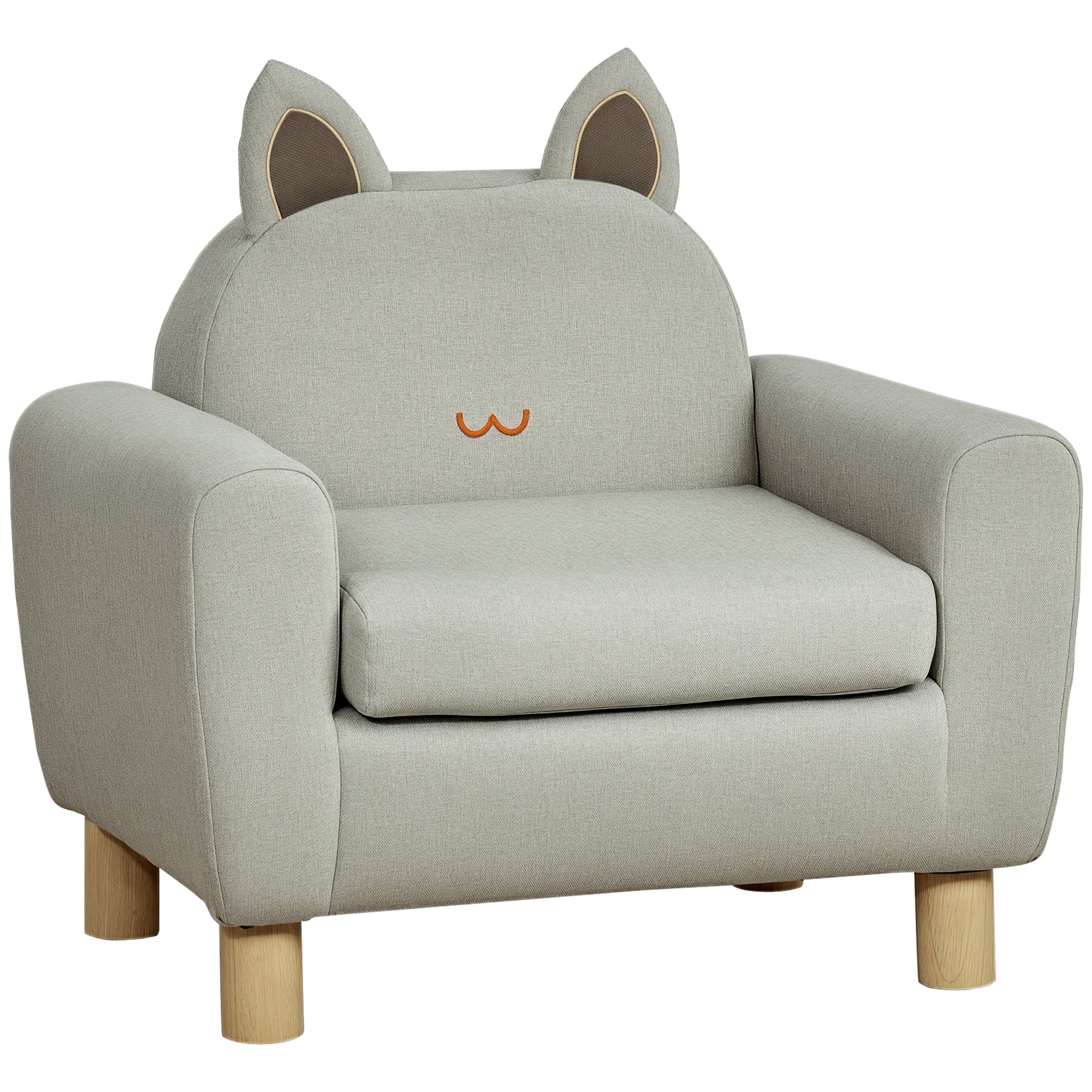 HOMCOM Gyermek Szék Fülekkel, Magas Komfort, Karfák, Párnázott Ülés, Magas Sűrűségű Hab Töltet, Hevea Fa Lábaival, Szürke Vászon Kárpitozás
