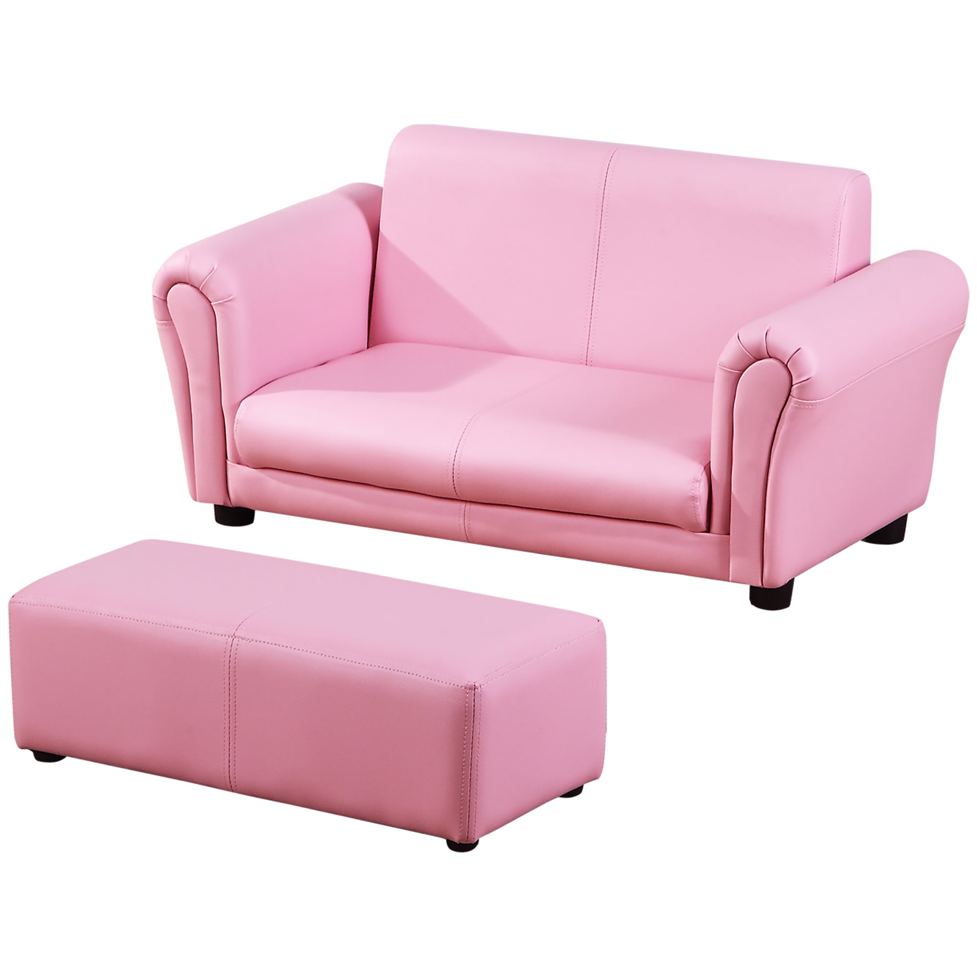 HOMCOM Gyerek Kanapé Puffal, Gyerekeknek Szánt Kanapé, Gyerek Bútor, Rózsaszín 83 x 42 x 41 cm