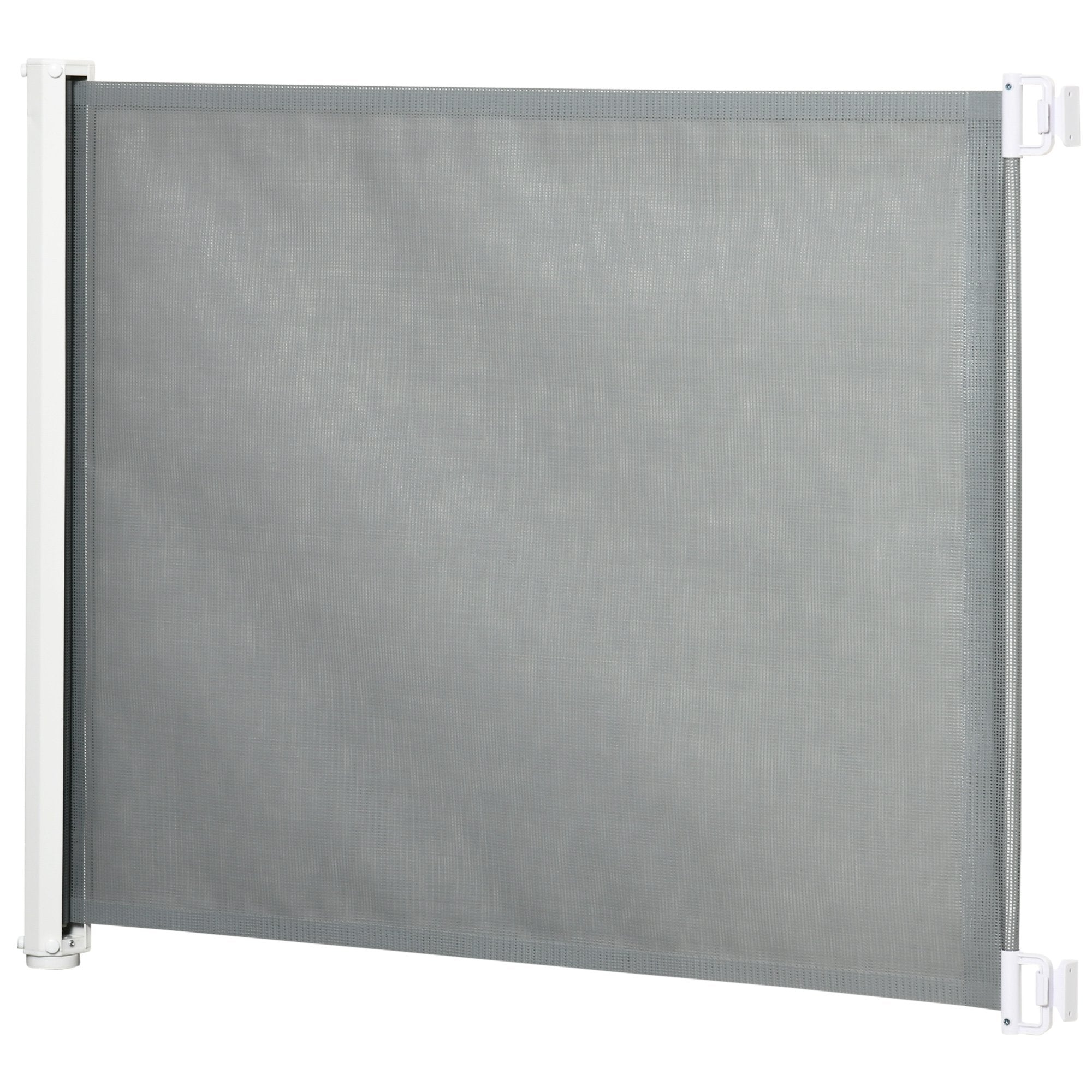 PawHut Kutyák számára készült Ajtóvédő Lépcsővédő Biztonsági Döntés Ajtóvédő Lépcsővédő Kihúzható Lépcsővédő Rolós Visszahúzható Műanyag Szürke 115 x 82.5 cm