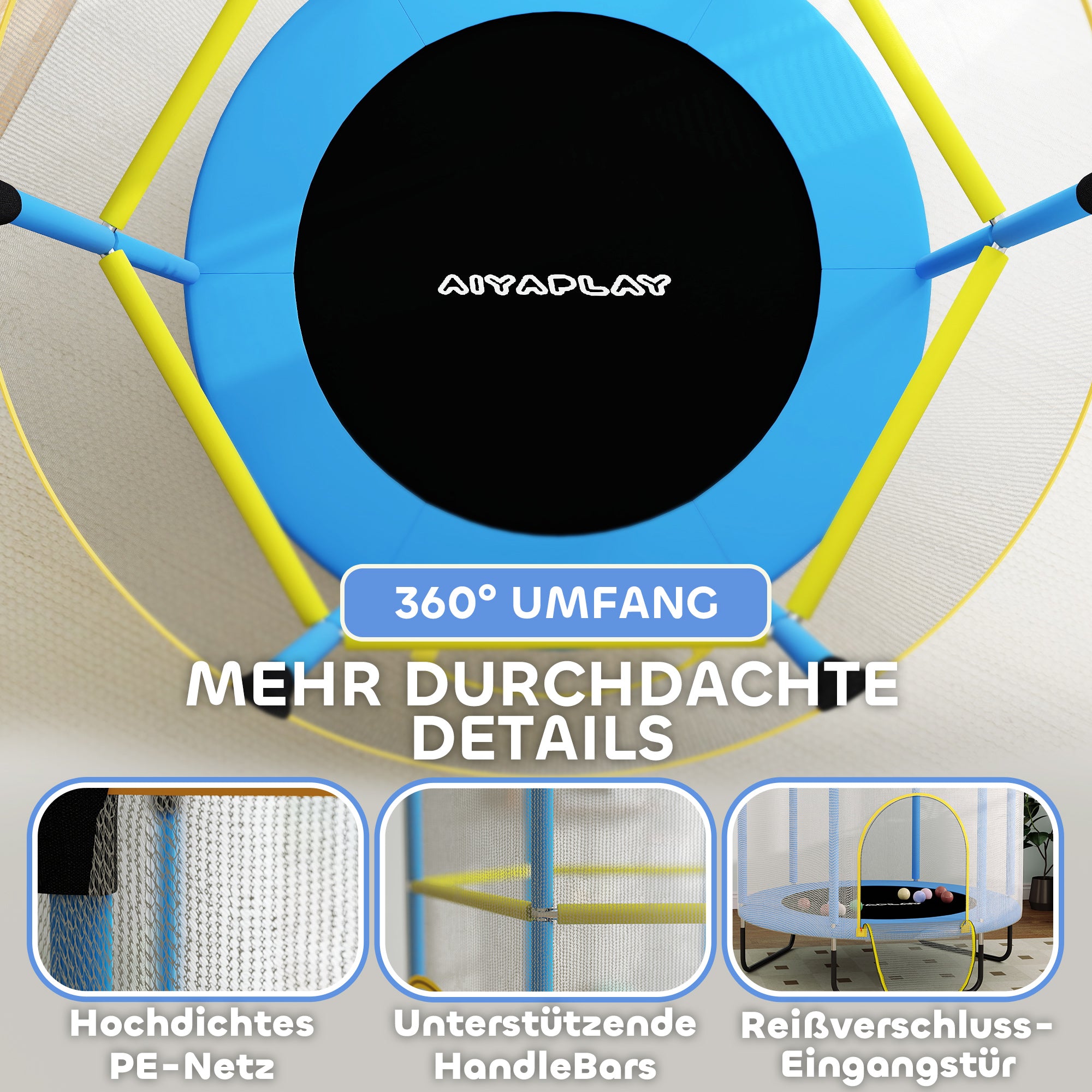 AIYAPLAY Gyerek Trambulin Ø140cm Kültéri Trambulin Biztonsági Hálóval, Cipzárral, Rugós Kötéllel, Perem Borítással, Kerti Trambulin Beltéri és Kültéri Használatra