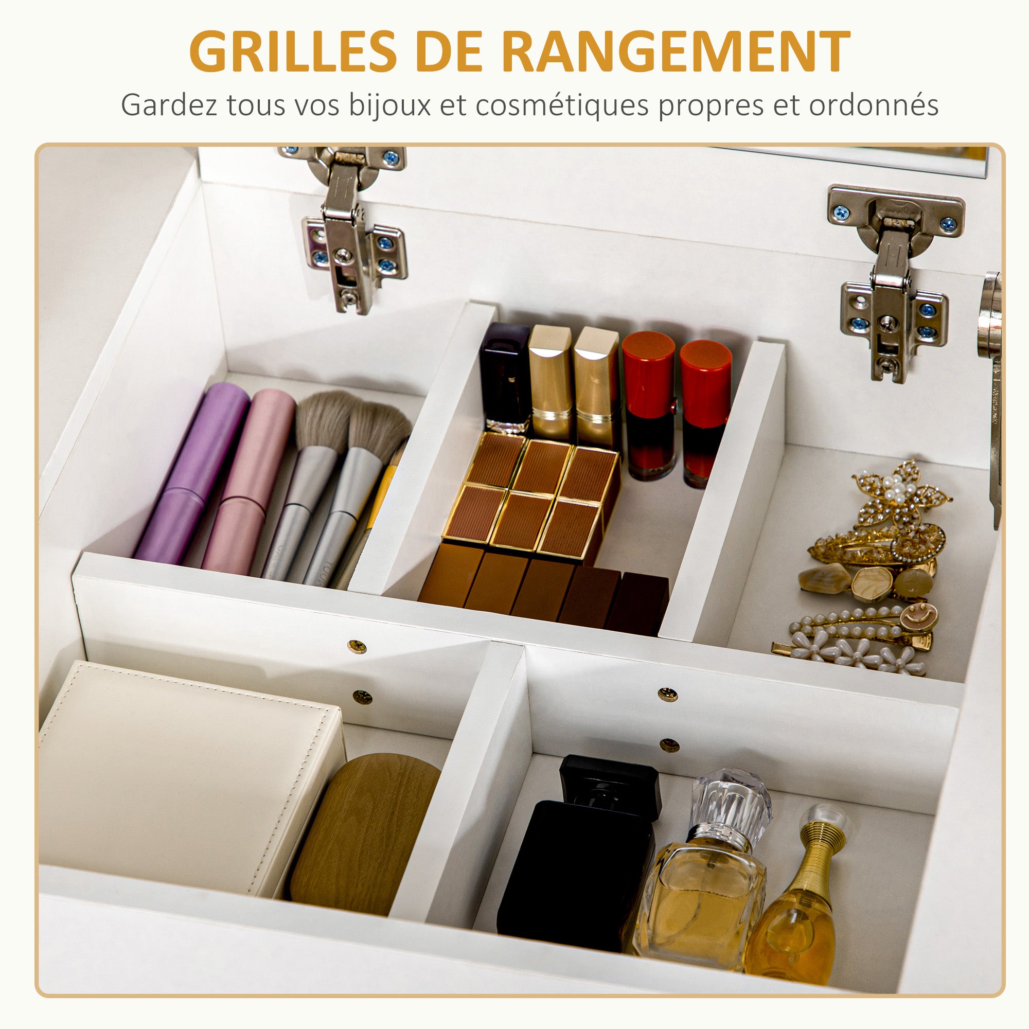 HOMCOM Fodrásztükörasztal Székkel, Sminkasztal 2 Fiókkal és Hajtható Tükörrel, Párnázott Ülés, 100 x 45 x 118 cm, Fehér