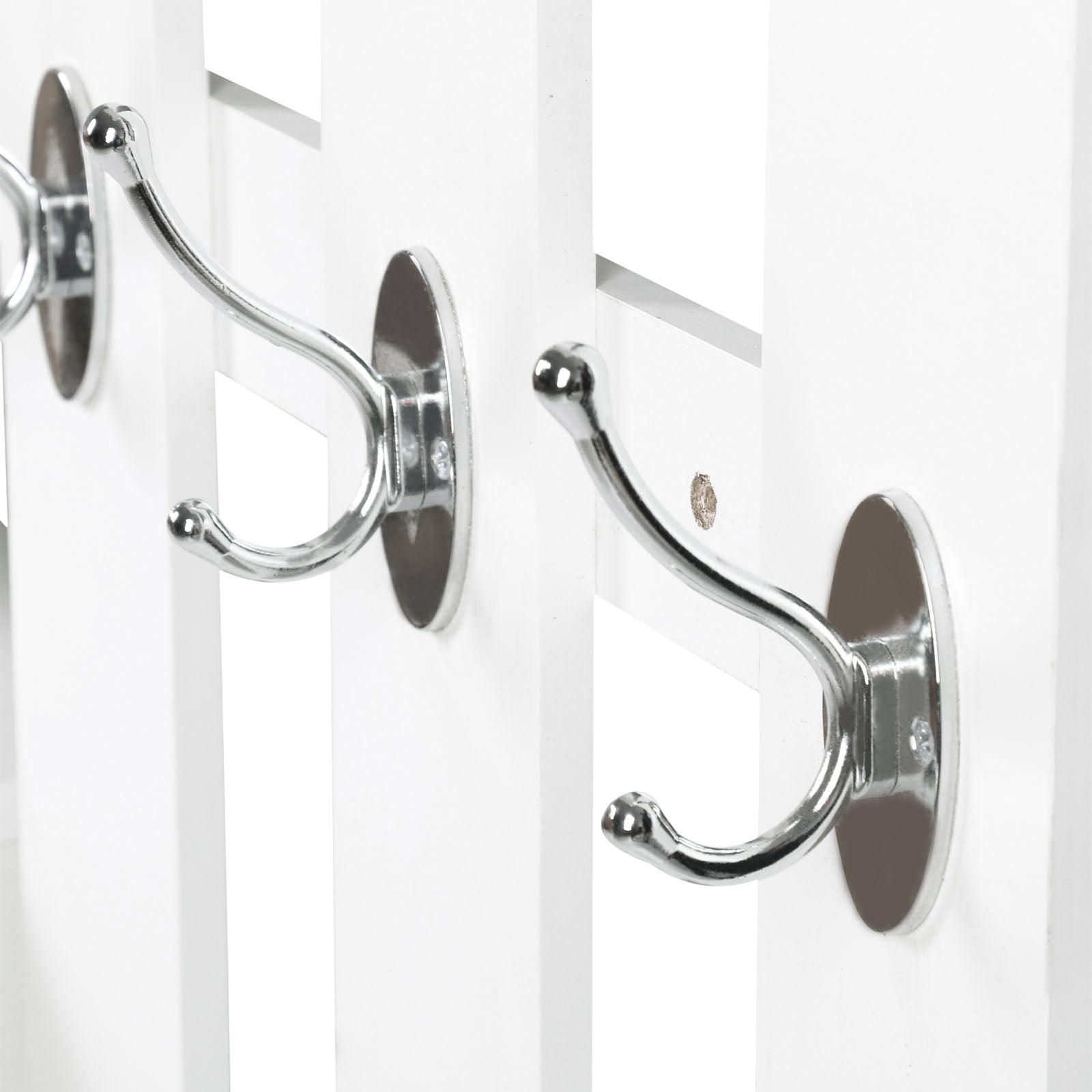 HOMCOM Előszoba Fali Faállvány Tükörrel és Cipőtárolóval 2 Darabos Előszoba Bútor 6 Akasszal, Polcokkal és Kihajtható Fiókkal Az Előszobához Fehér