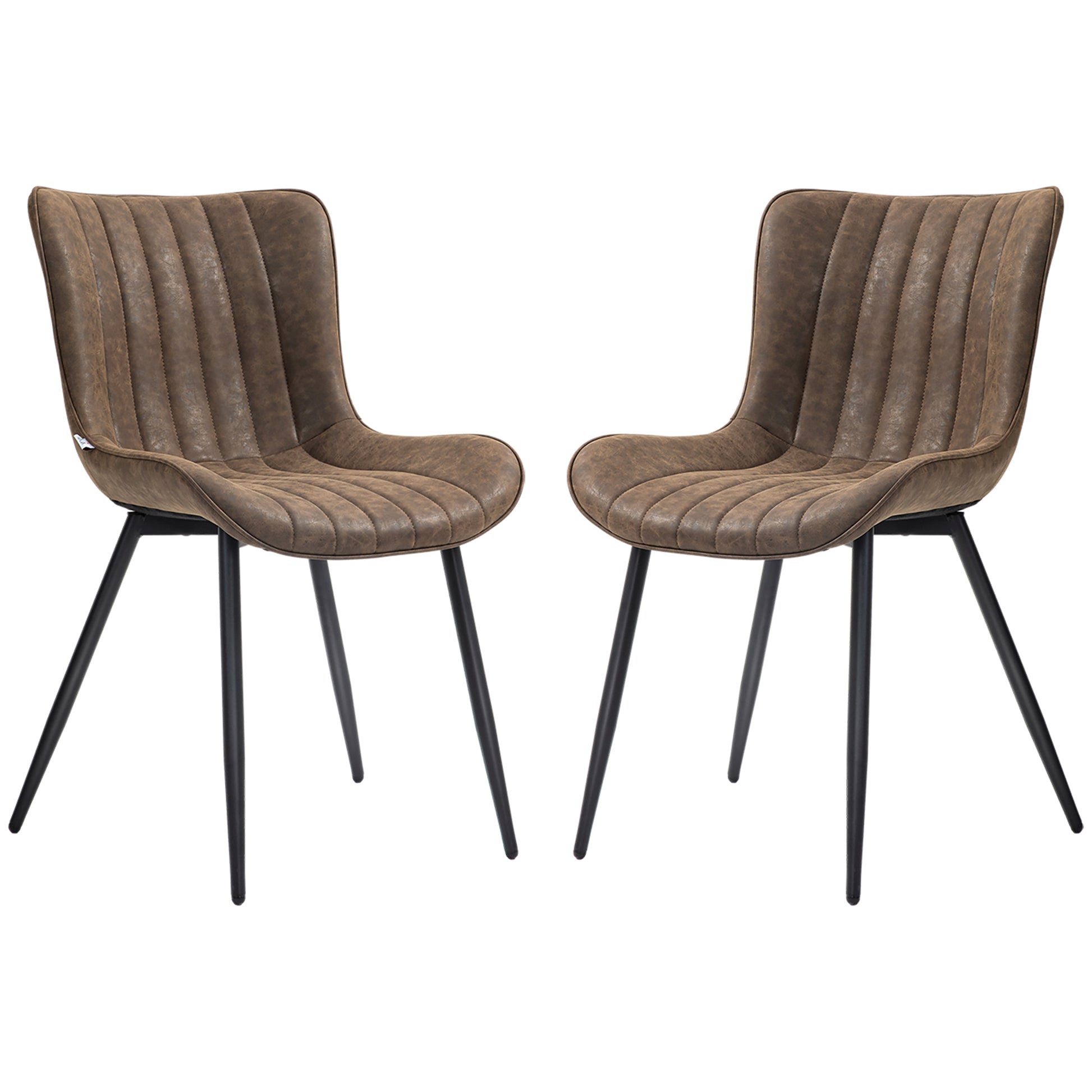 HOMCOM 2 db étkezőszék modern konyhai szék szintetikus burkolattal, puffos designnal és fém lábakkal, nappaliba, étkezőbe, hálószobába, barna
