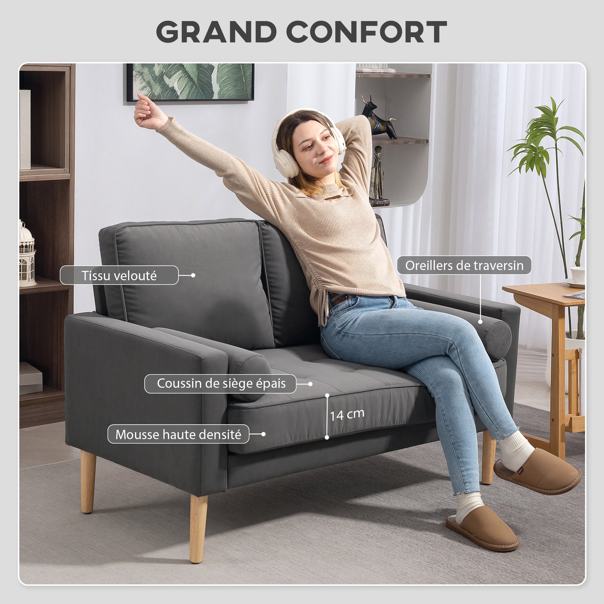 - - TELJES NAPOS KÉNYELEM: Élvezd a kivételes kényelmet a vastag habbetéttel, független rugós rendszerrel és puha velúr szövettel - tökéletes a relaxálásra munka után vagy a csendes olvasási pillanatokra, eltüntetve a napi stresszt és elősegítve a teljes kikapcsolódást a 2 fős kanapén.