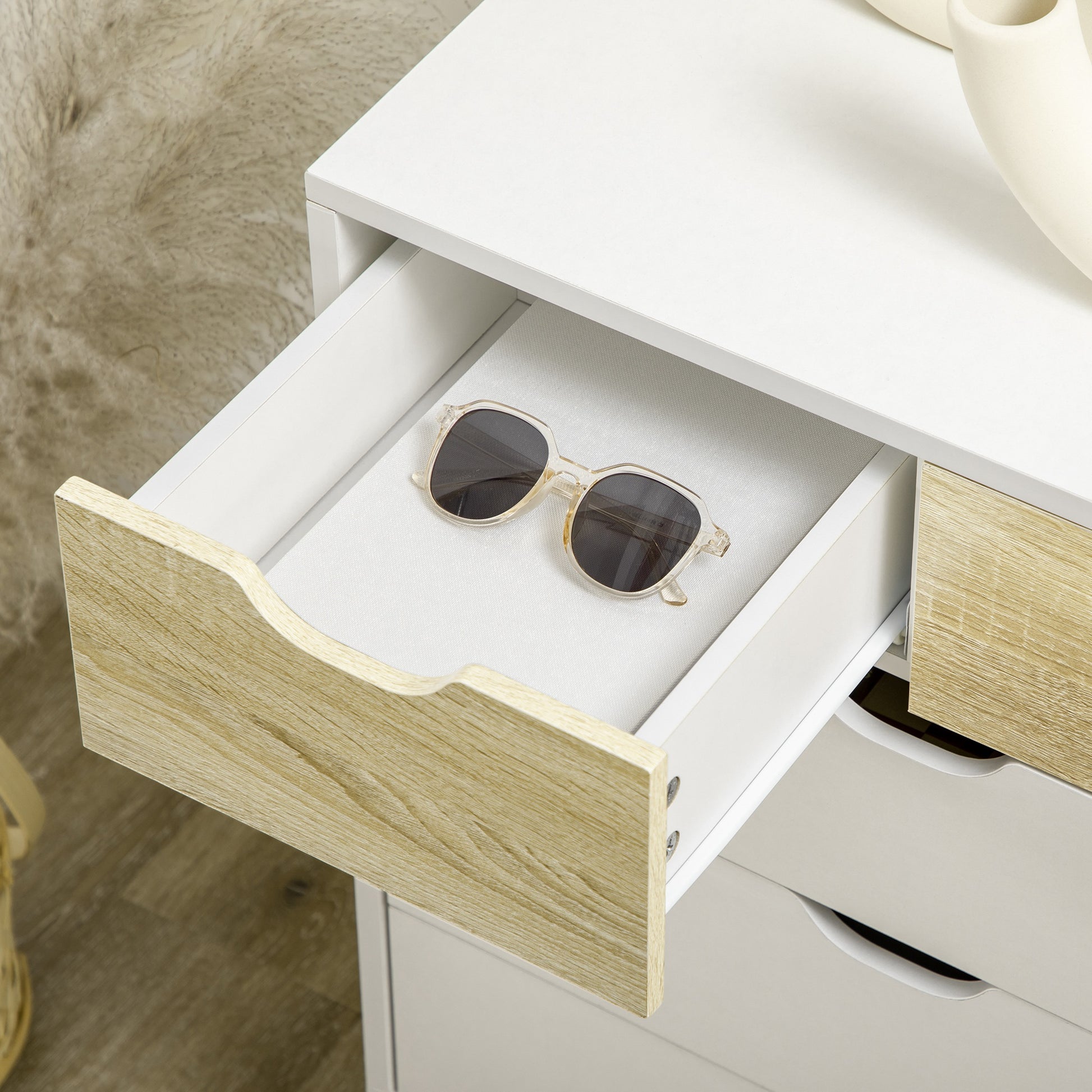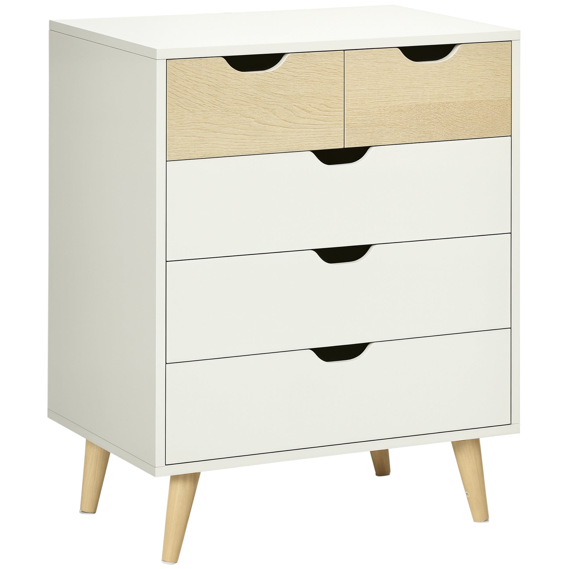 HOMCOM 5-Fiókos Komód Emelt Lábakkal Hálószobába, Nappaliba vagy Irodába – Modern Stílus, Anti-tipp 60x40x77,5 cm Természetes és Fehér