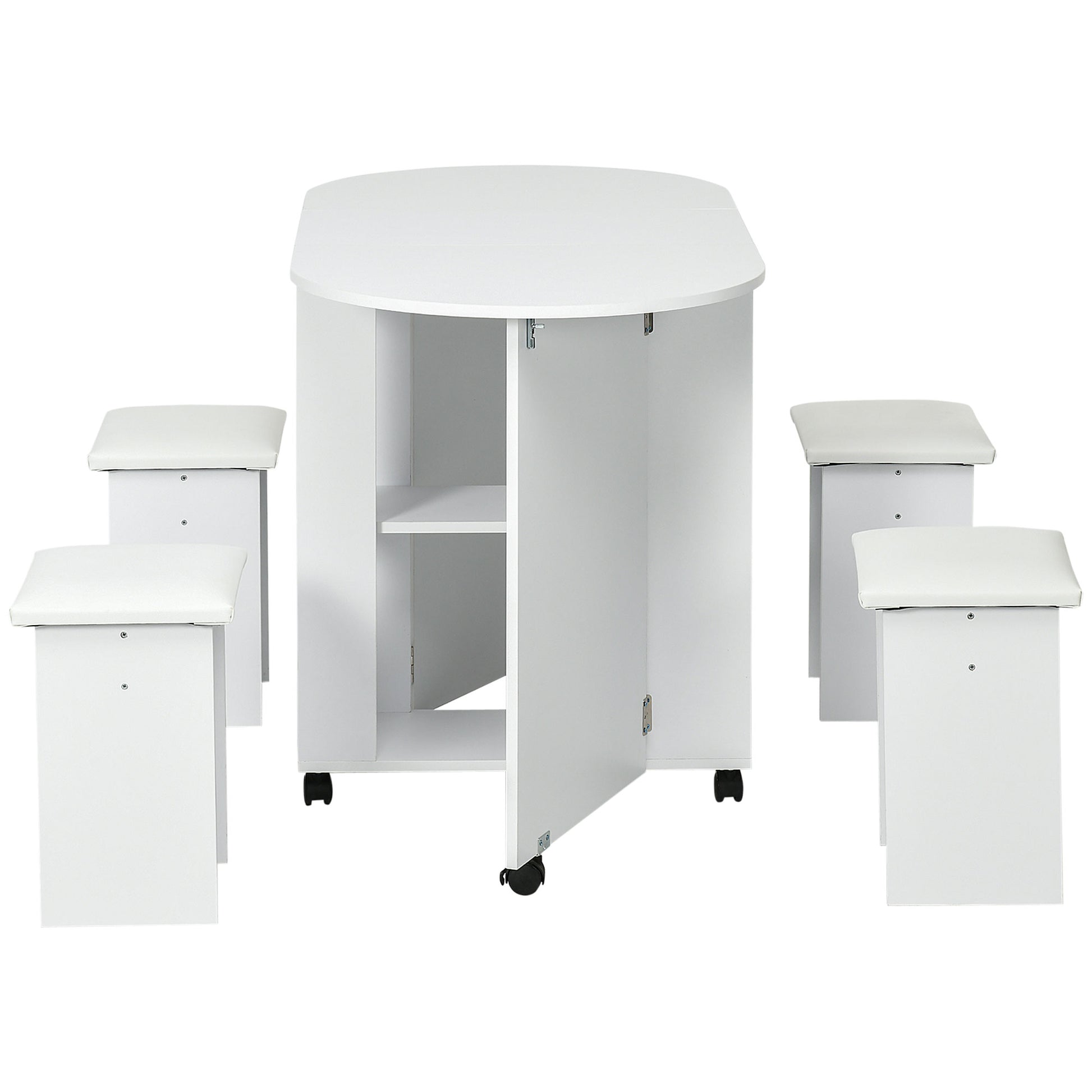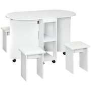 HOMCOM 5 részes Konyhai Készlet, Összecsukható Asztal 2 Polccal és 4 Forgácslap Székkel, Fehér