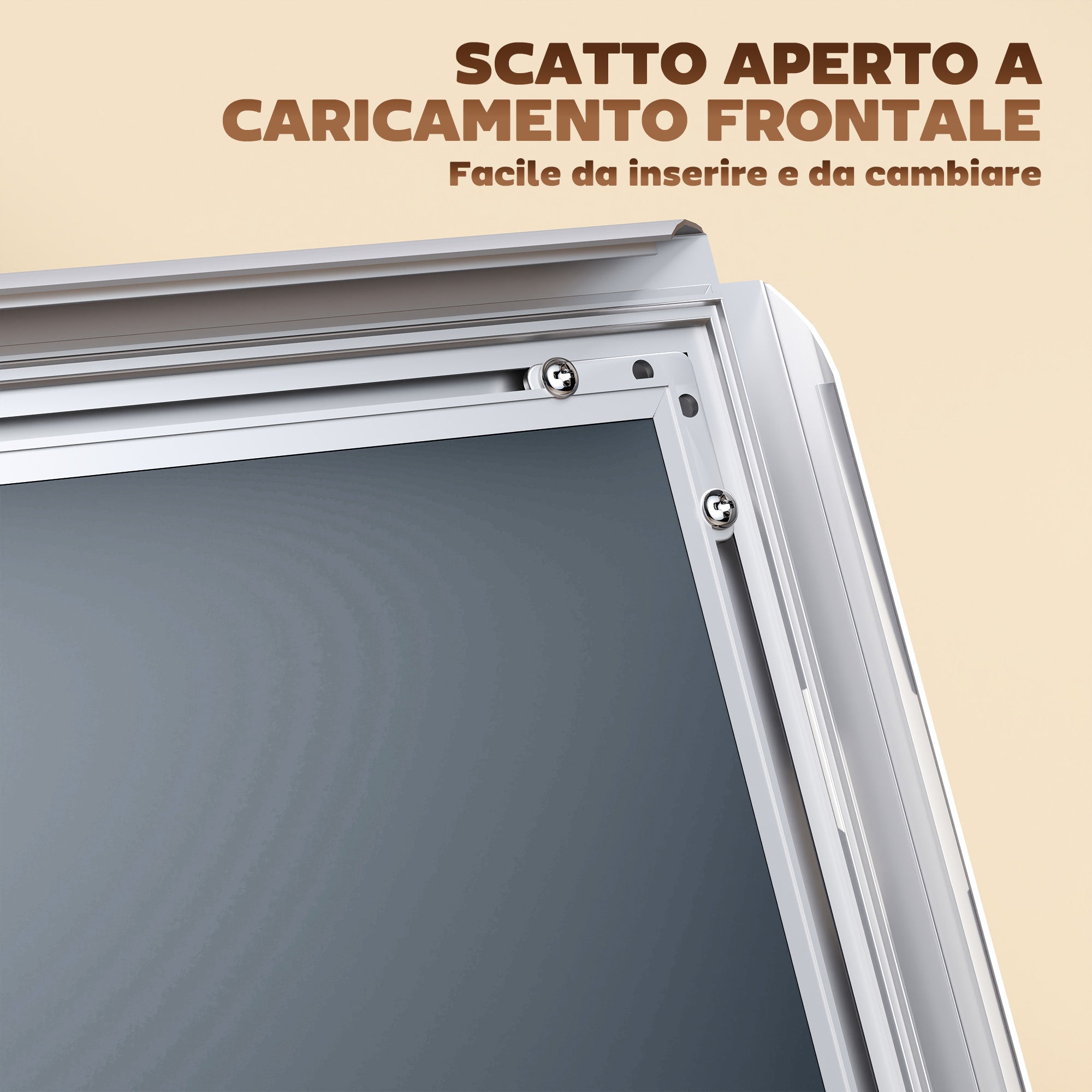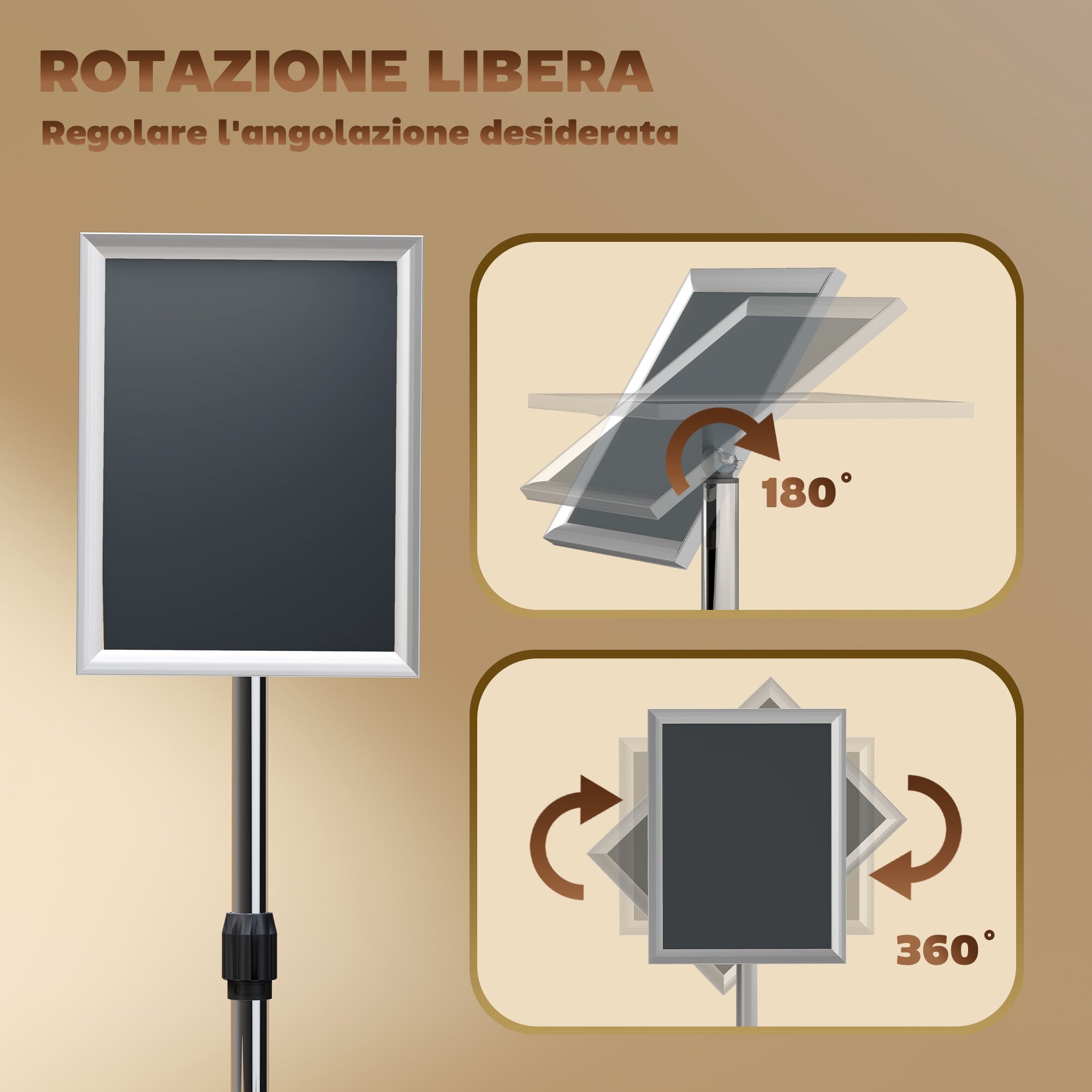 HOMCOM A3 Posztertartó Állvány Magasság és Dőlésszög Állítással, Acél és Alumínium Lábazattal, 45x30x85-135 cm, Ezüst