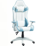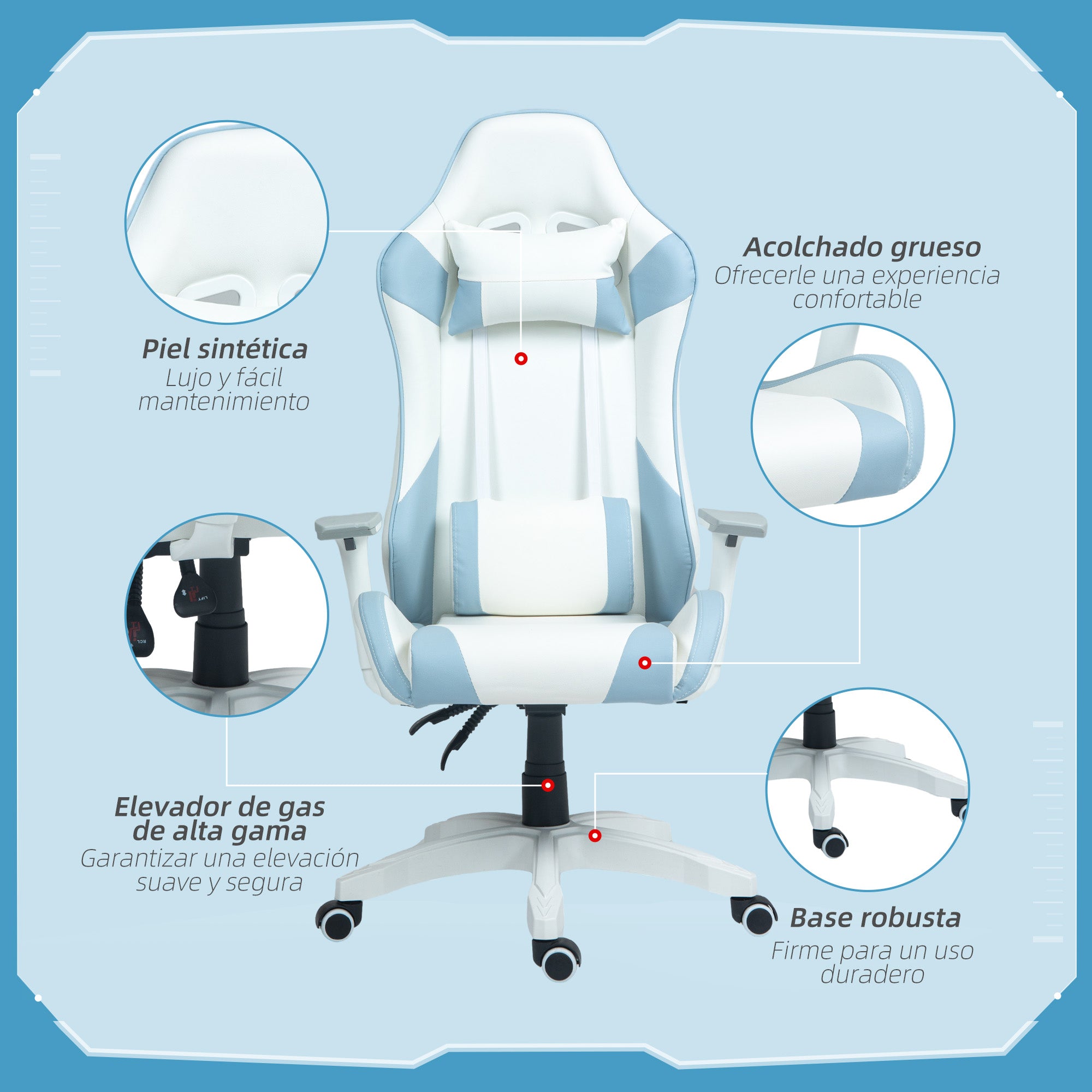 HOMCOM Dönthető Játékosszék Forgatható Gamerszék Párnázott Lumbális Támasszal, 3D Kartámaszokkal, Leszerelhető Fejpárnával és Magasságállítással - Fehér és Kék