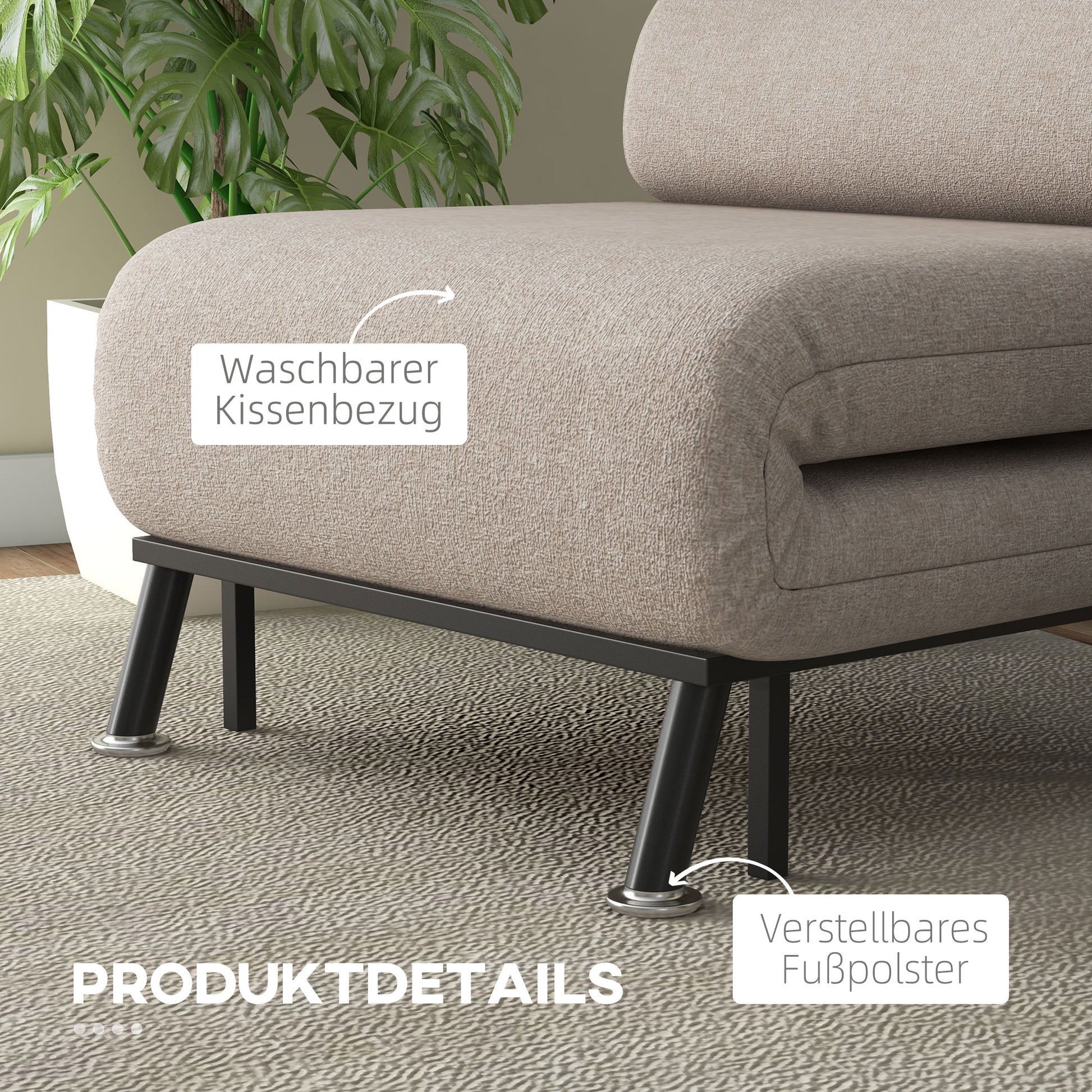 HOMCOM Kanapéágy, Összecsukható Szék Ágyfunkcióval, Hátpárnázott, Hajtogatható Fekvőszék, Állítható Támla, Max. 150 kg Teherbírás, Beige