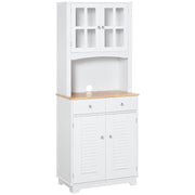 HOMCOM Konyhai Tálalószekrény Konyhaszekrény Étkezői Buffé 2 Fiókkal Állítható Polcokkal és Nyitott Polccal Fordulásgátló 68x39.5x170 cm Fehér