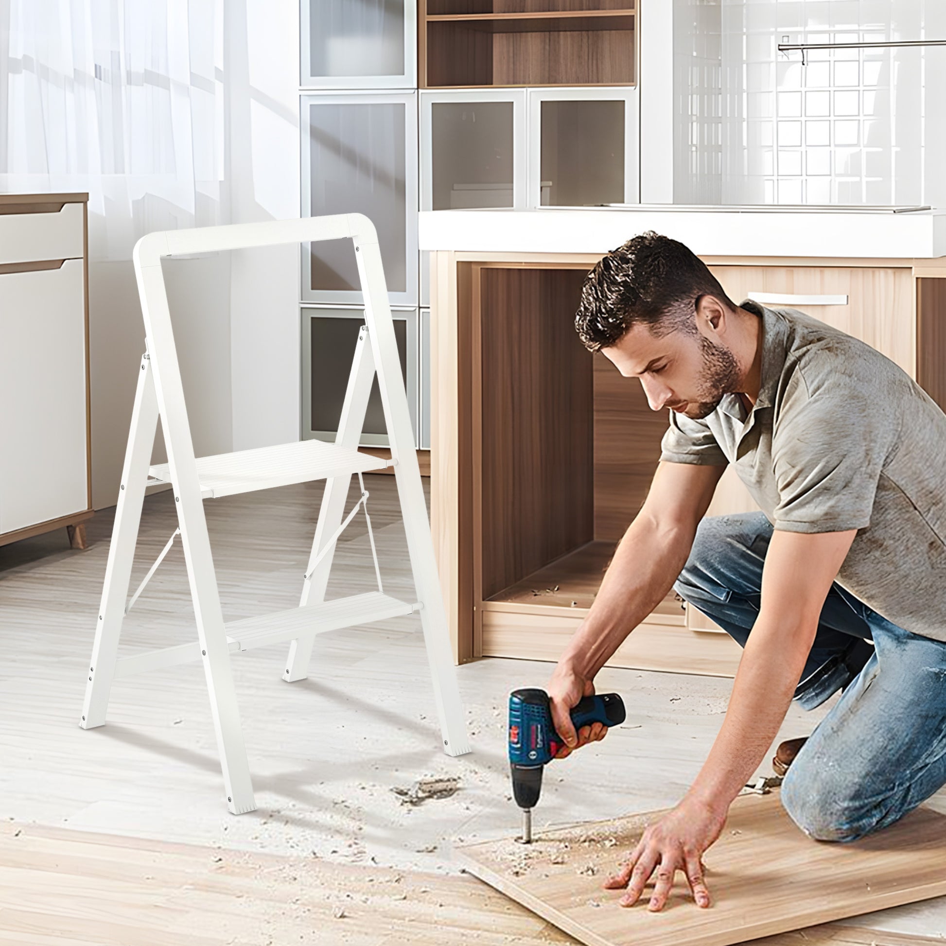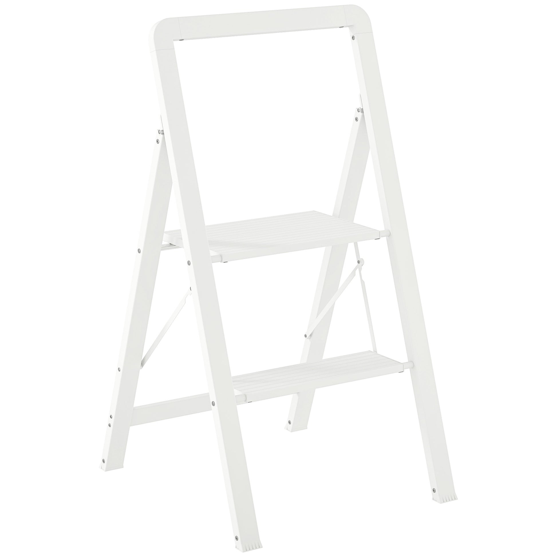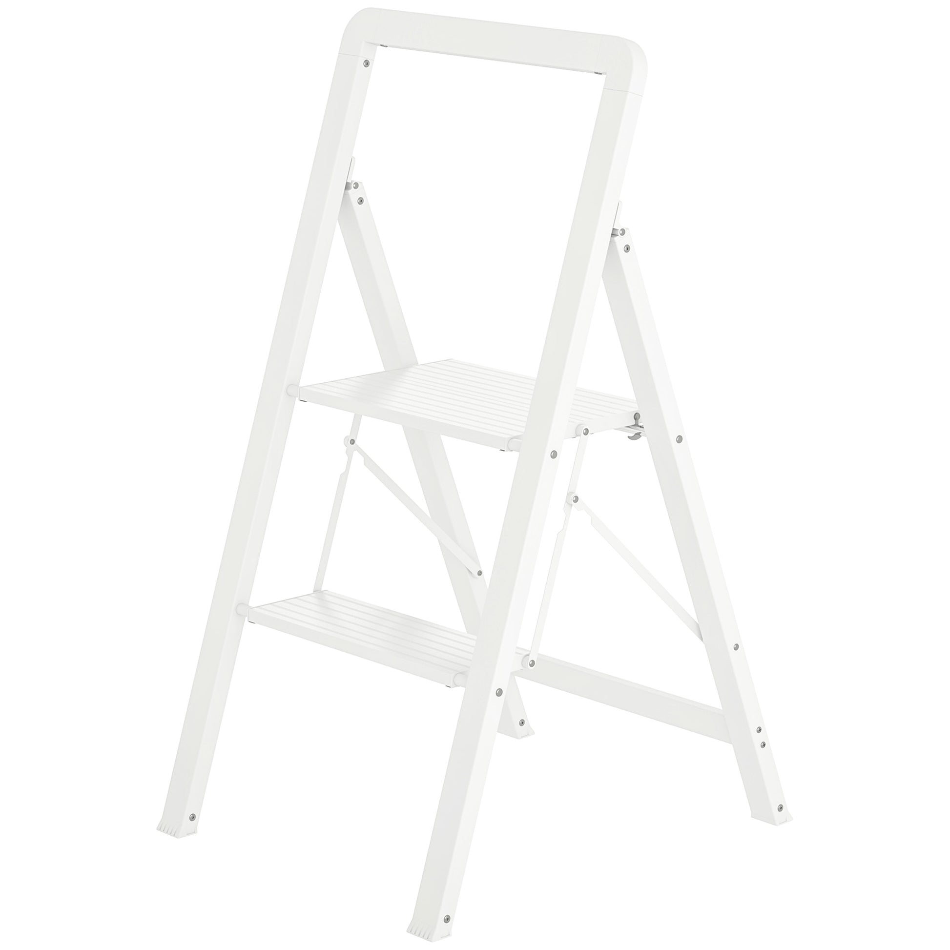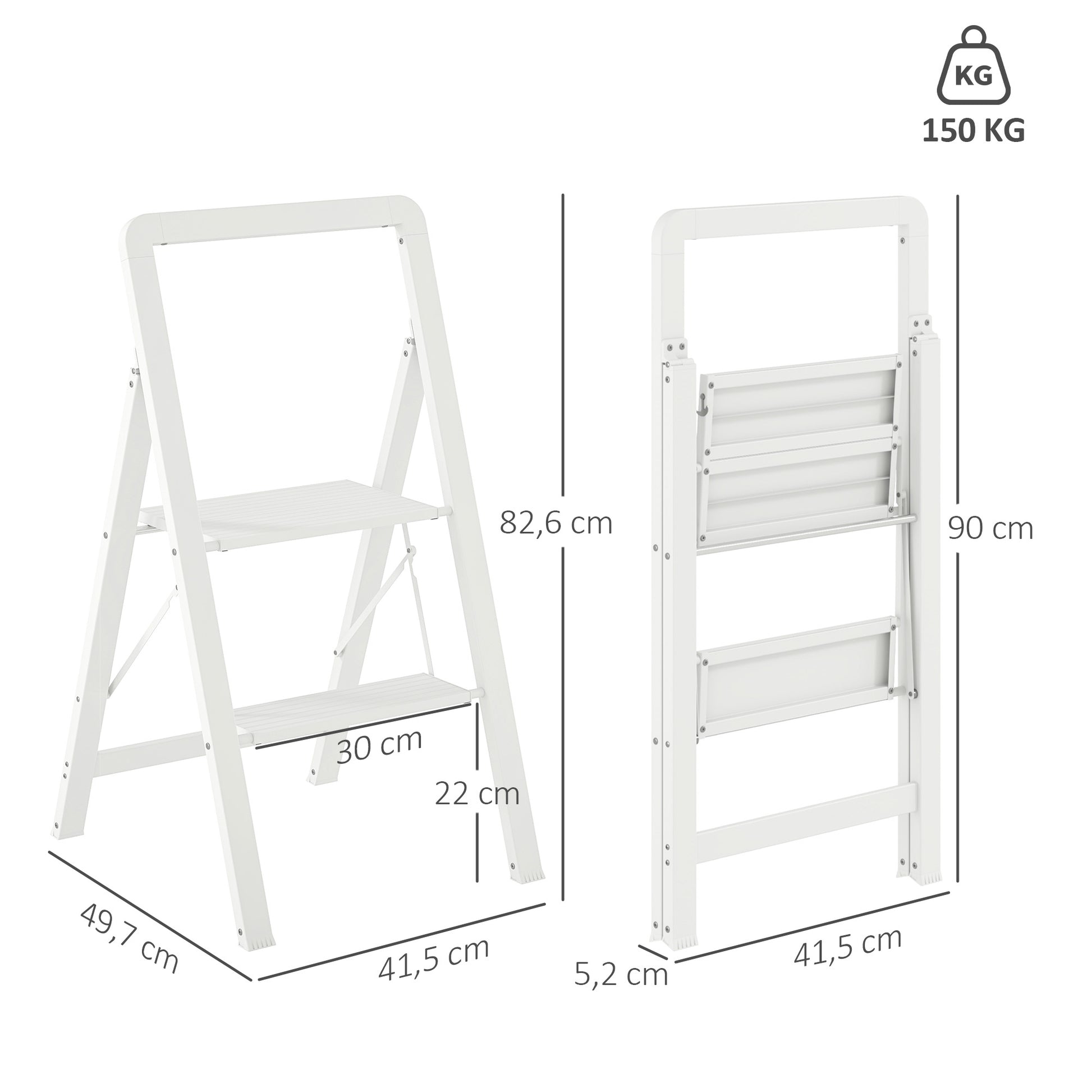 HOMCOM Létra 2 Fokkal - Csúszásmentes Összecsukható Lépcsőfok Karral, 150 kg Teherbírással, Könnyű Alumínium Létra, 41,5 x 49,7 x 82,6 cm, Fehér