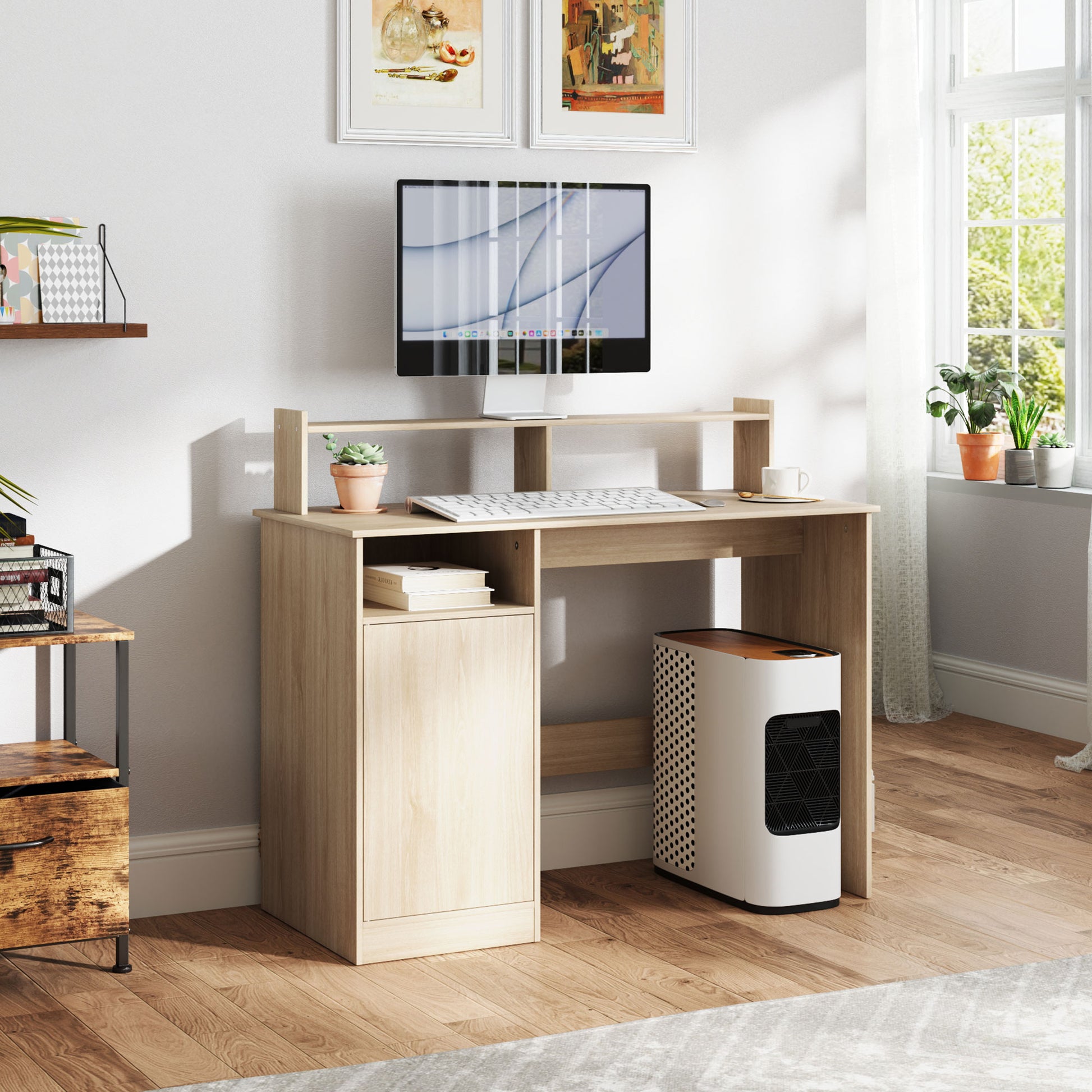 HOMCOM Modern Íróasztal Polcokkal, Nyitott Rekeszekkel és Monitor Állvánnyal Tanulóasztal Otthoni Irodához 108x50x94 cm Természetes
