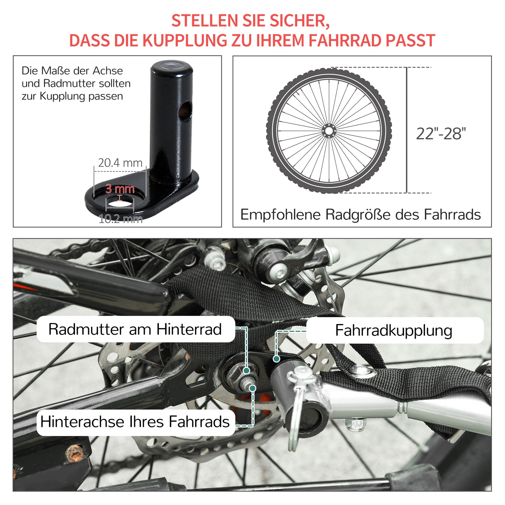 - - Összméretek: 130x77x65 cm (HxSzxM), Szállító doboz: 86x57x36 cm (HxSzxM), Szín: Piros/Fekete, Anyag: Acél és Oxford, max. teherbírás: 40 kg. A trailer alkalmas 22"-től 28"-ig terjedő kerékpárokhoz.