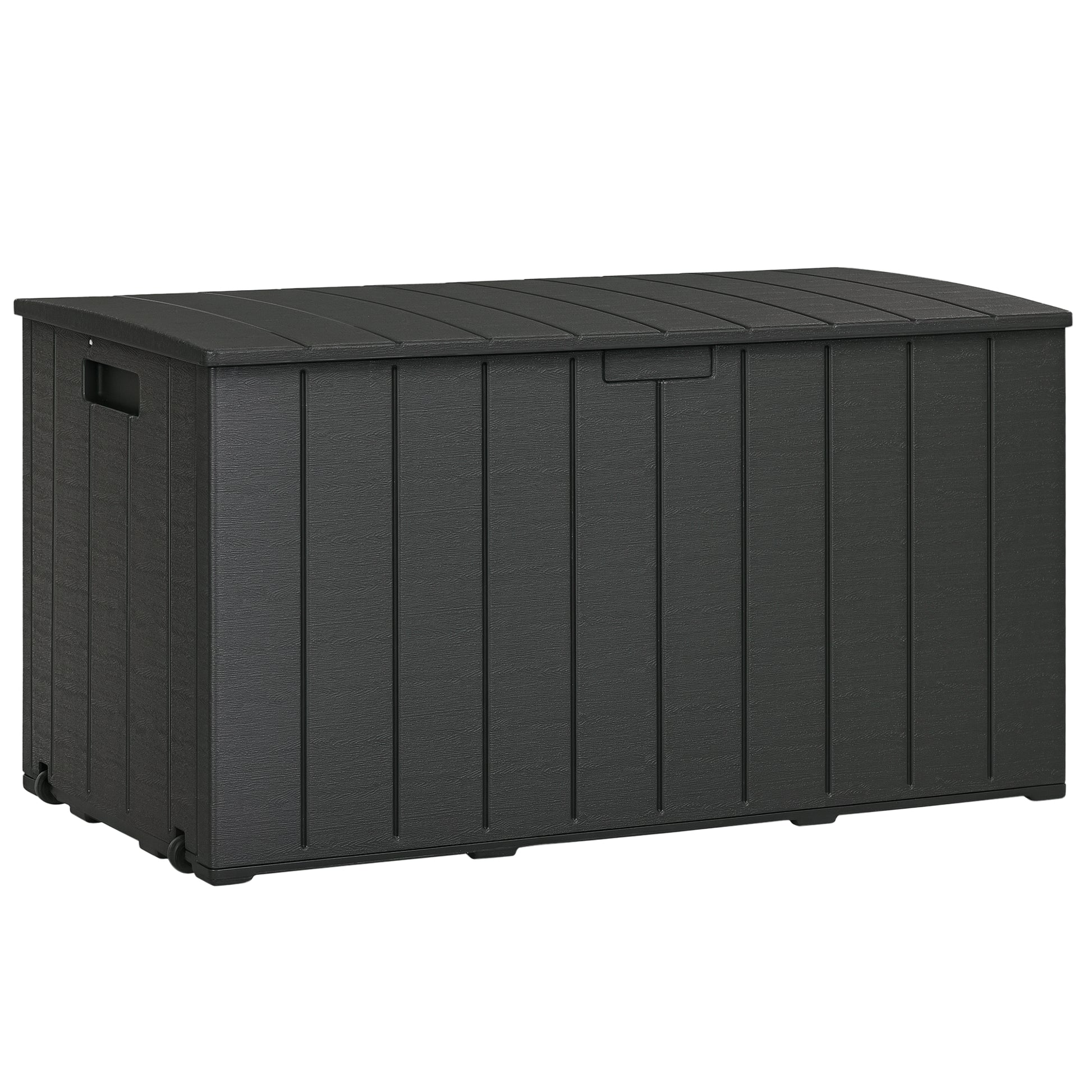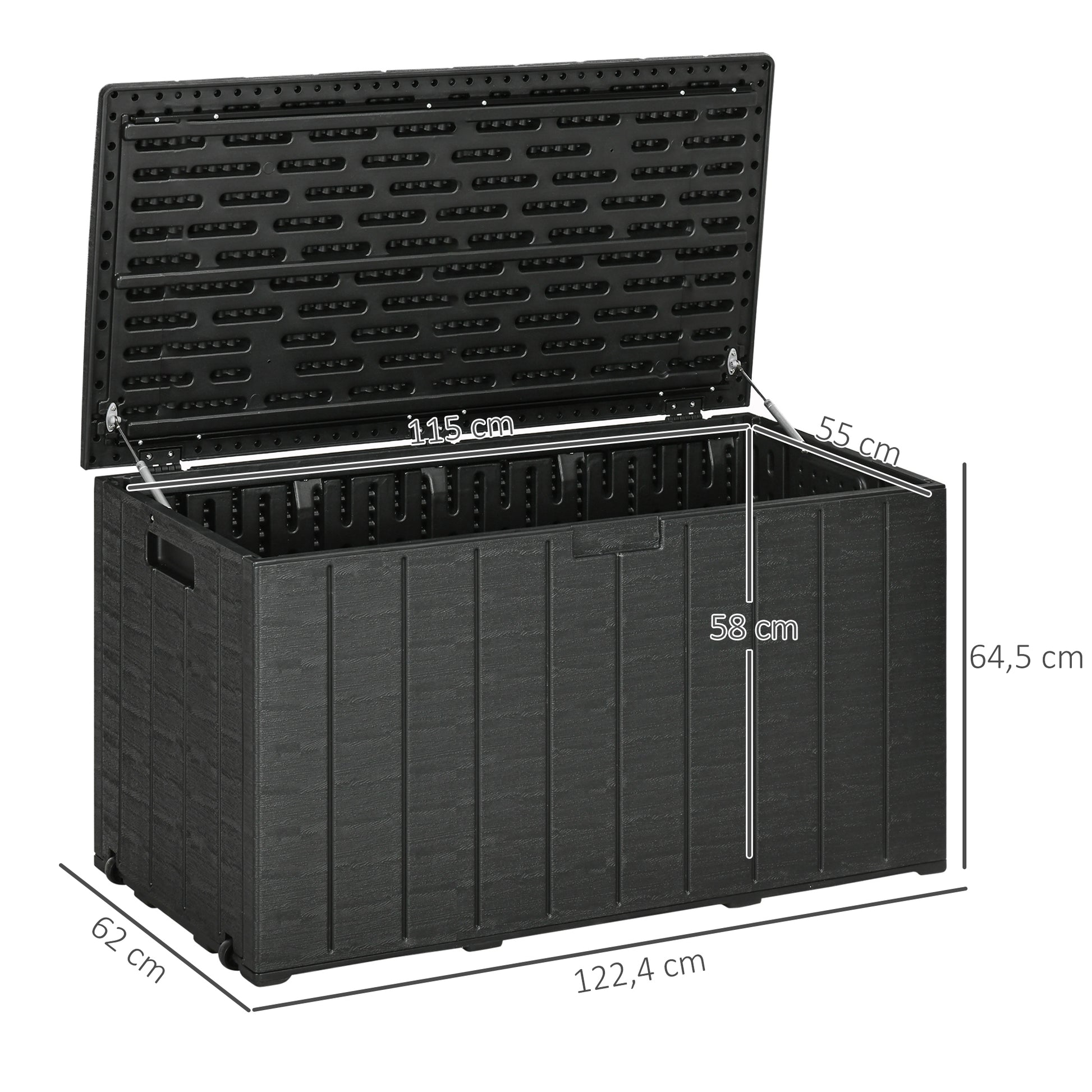 Outsunny 366L Kültéri Tárolódoboz – Műanyag, Kétfalú, Vízálló, UV-ellenálló Kerekekkel és Fogantyúkkal a Teraszhoz, 100 kg Teherbírás, 122,4x62x64,5 cm, Fekete