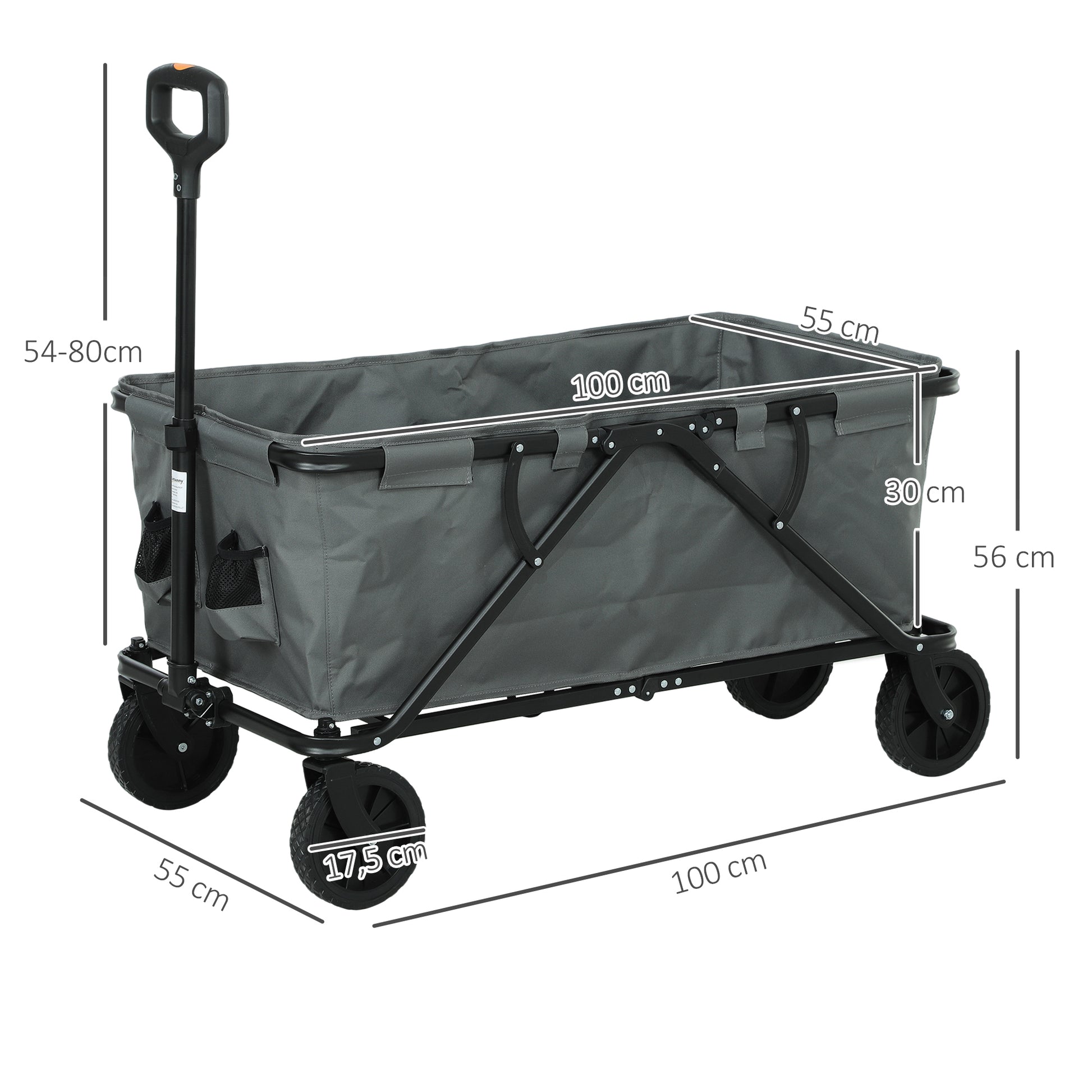 Outsunny Kerti Kocsi 120 kg terhelhetőség, összecsukható szállítókocsi levehető fedéllel, fogantyúval, kerekekkel, kormányzott akssal, kerti kocsi 160 literes felszerelőkocsi otthoni kerthez, Sötétszürke