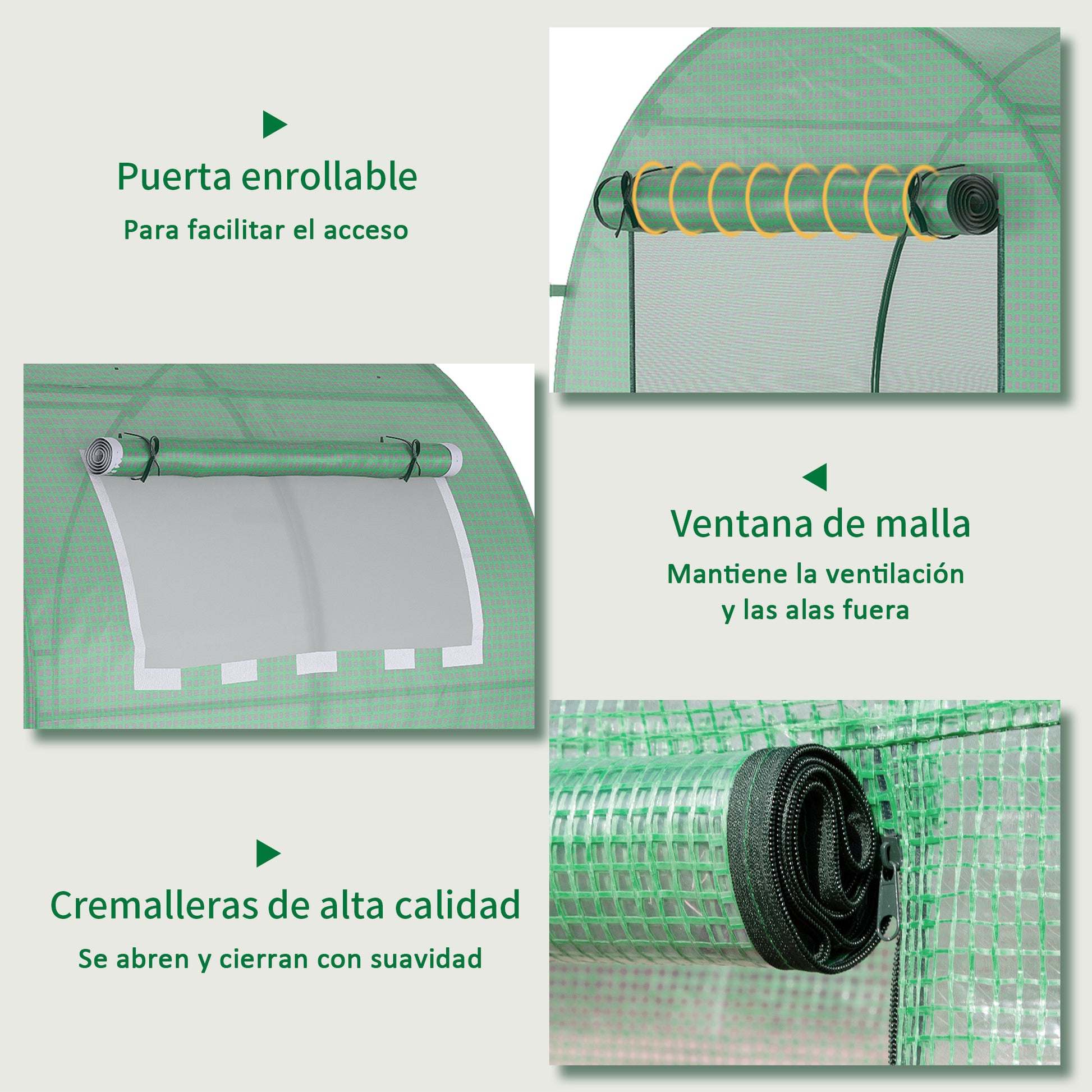 - - FELHÚZHATÓ AJTÓVAL ÉS ABLAKKAL: A zipzáras felhúzható ajtó teljesen kinyitható a könnyű belépéshez, növénygondozáshoz, valamint szerszámok és cserepek szállításához. Ezen kívül 1 felhúzható ablak található a jobb belső szellőzés érdekében.