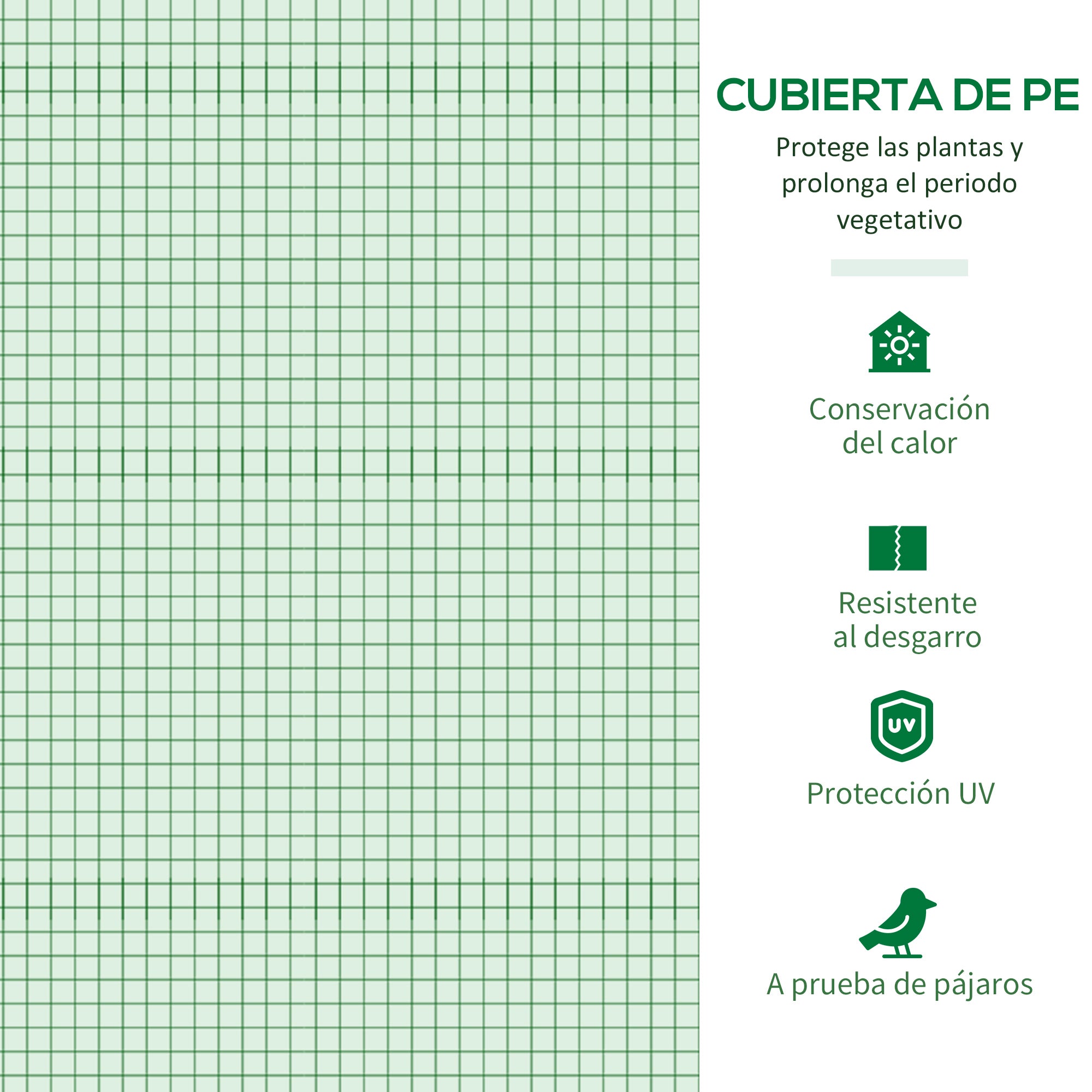 - - PE BURKOLAT: A tunnel üvegház UV-védő PE burkolata védelmet nyújt a belső térnek a szél, enyhe eső és UV-sugárzás ellen, miközben lehetővé teszi a fény áthaladását, hogy növényeid virágozhassanak. A kiterjesztett 10 cm-es széleket teljesen a földbe kell temetni a nagyobb stabilitás érdekében.