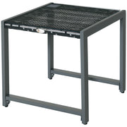 Outsunny Kültéri Asztal Oldalsó Asztal Terasz Bútor Edzett Üveggel Polyrattan + Alumínium Szürke 50 x 49.5 x 50 cm