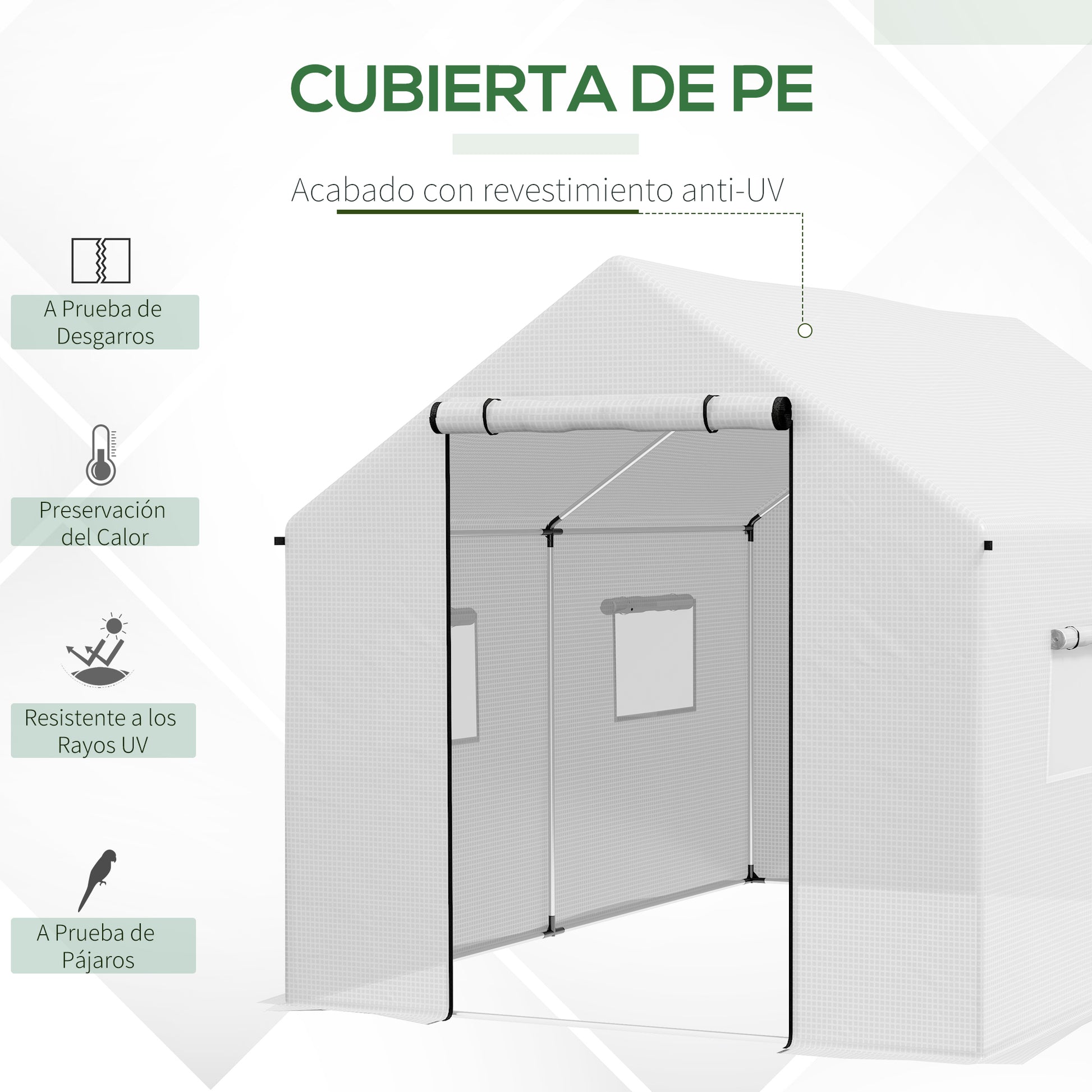 Outsunny Kültéri Üvegház 2x3x2 m Alagút Üvegház 4 Rácsablakkal és Cipzáras Ajtóval, UV-védett Üvegház Teraszhoz és Kerthez Fehér
