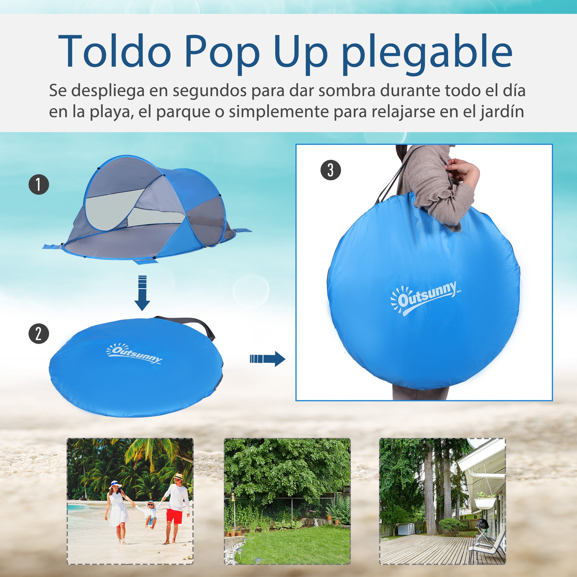 Outsunny Összecsukható Pop-up Strand sátor Automatikus Strand Védő 1-2 fő részére 1 Ajtóval 2 Ablakkal és Hordtáskával Parki Kempingezéshez 200x120x90 cm Kék