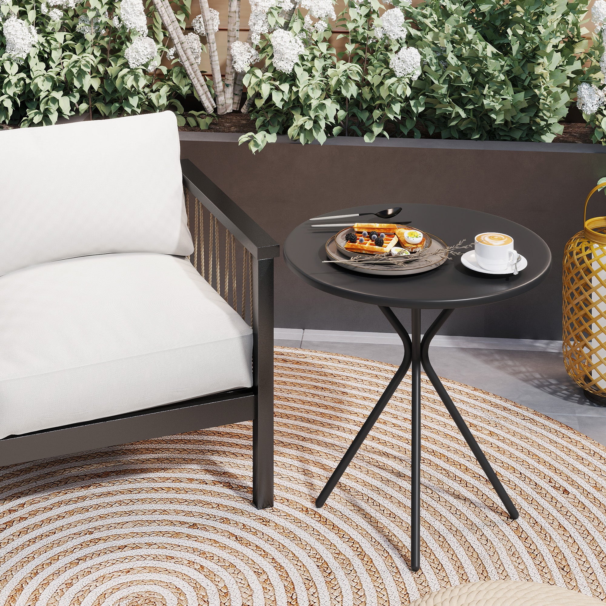 Outsunny Terasz Asztal Ø60 x 70 cm, Időjárásálló Acél Erkélyasztal, Kerek Étkezőasztal Ülőlappal Kültéri Kemping Asztal, Terasz Asztal Kerthez, Teraszhoz, Erkélyhez Fekete