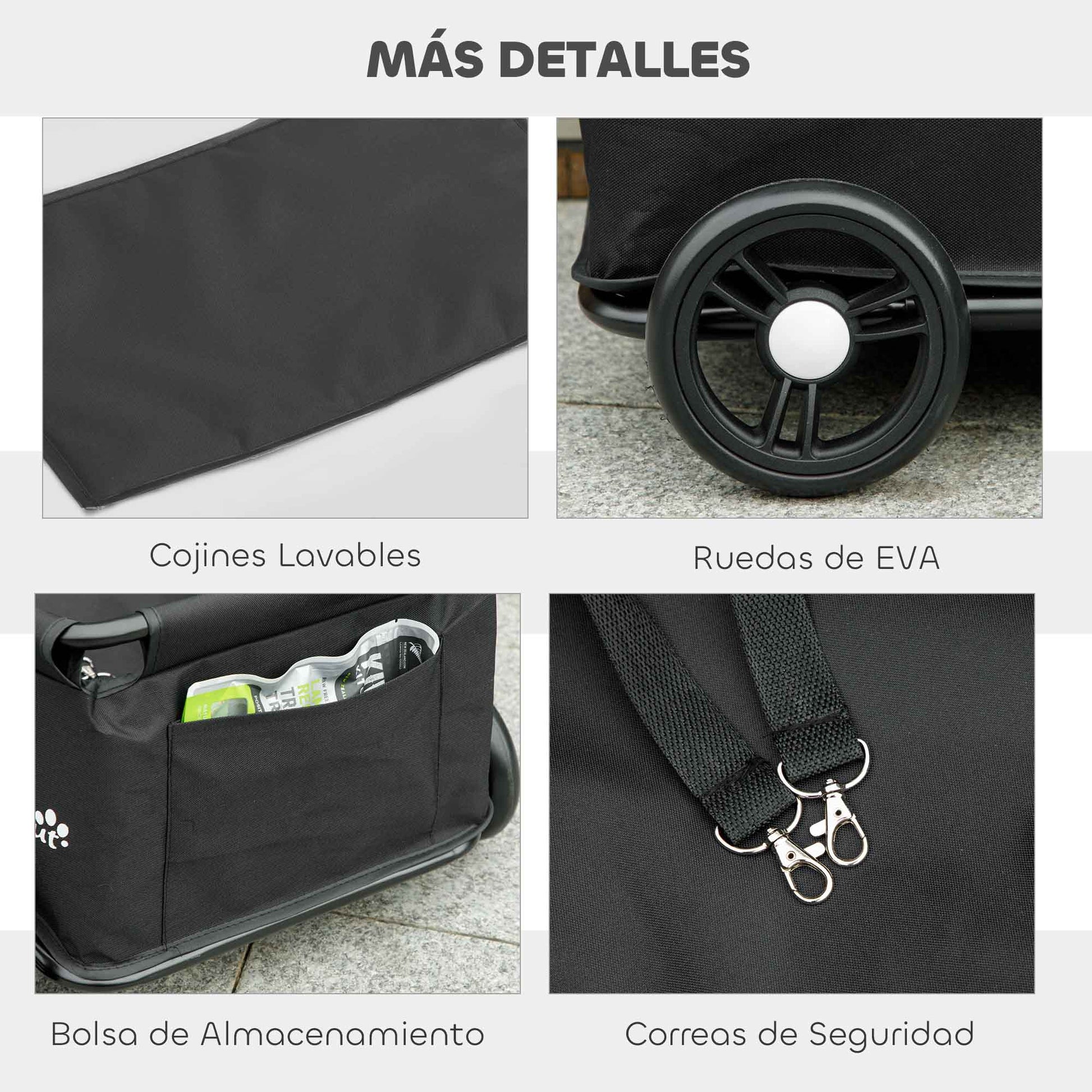 - - Kényelem és tartósság: Acélból és Oxford 600D szövetből készült, ez a kutyakocsi masszív és ideális napi használatra. A mosható párna kényelmes és meleg teret biztosít, amellyel a háziállat élvezheti az összes kirándulást.