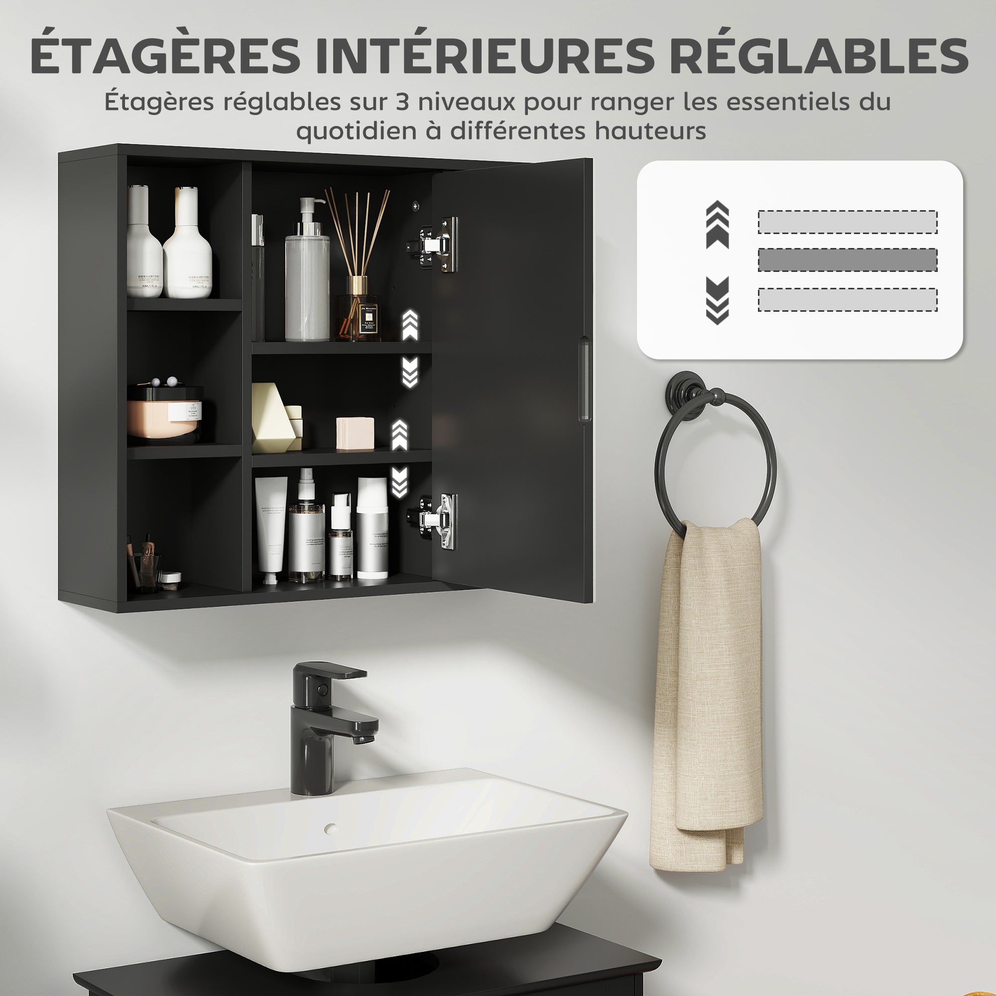 HOMCOM Fali Szekrény, Fürdőszobai Tárolószekrény Spiegellel, 60 x 14.5 x 49.4 cm, fekete