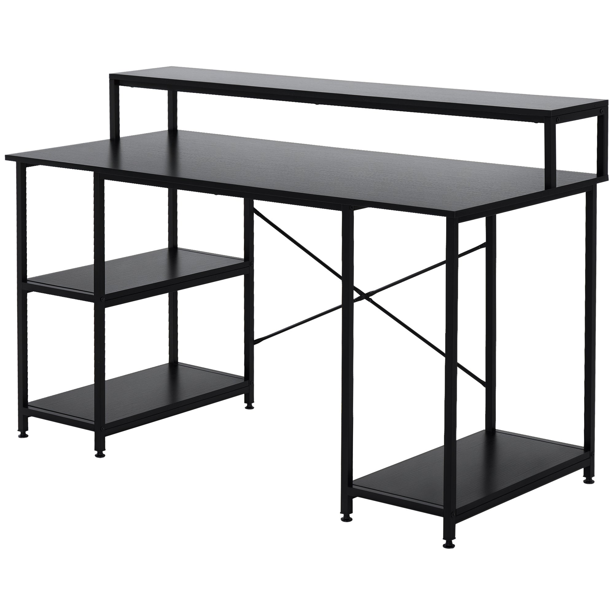 HOMCOM Computertisch Büro Studietisch mat 3 Aneger Top Tablezesf matjustéierbar Antirutschpads Metallrahmen 140x60x93 cm Schwarz