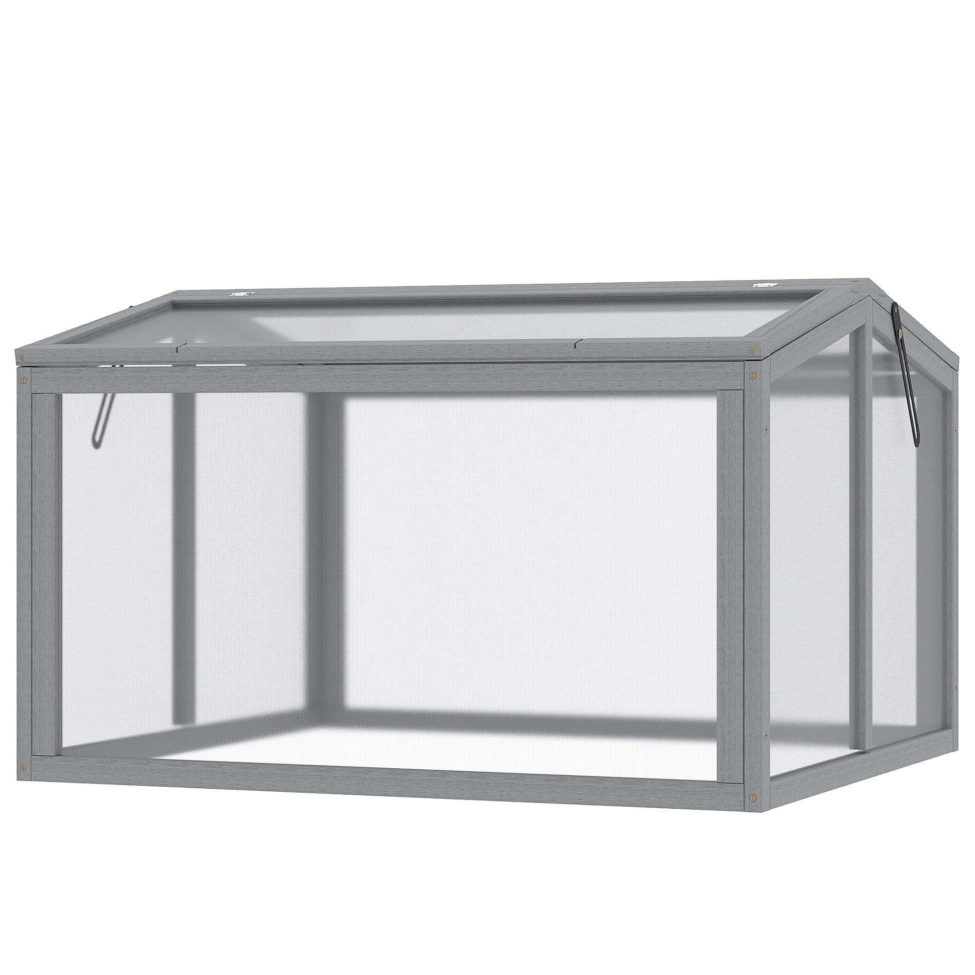 Outsunny Kaltraum aus Holz an Polycarbonat Gewächshaus 90 x 46 x 40 cm Wiederstandsfäegë Kaltraum Këschte fir de Gaarten Planzebett Groo