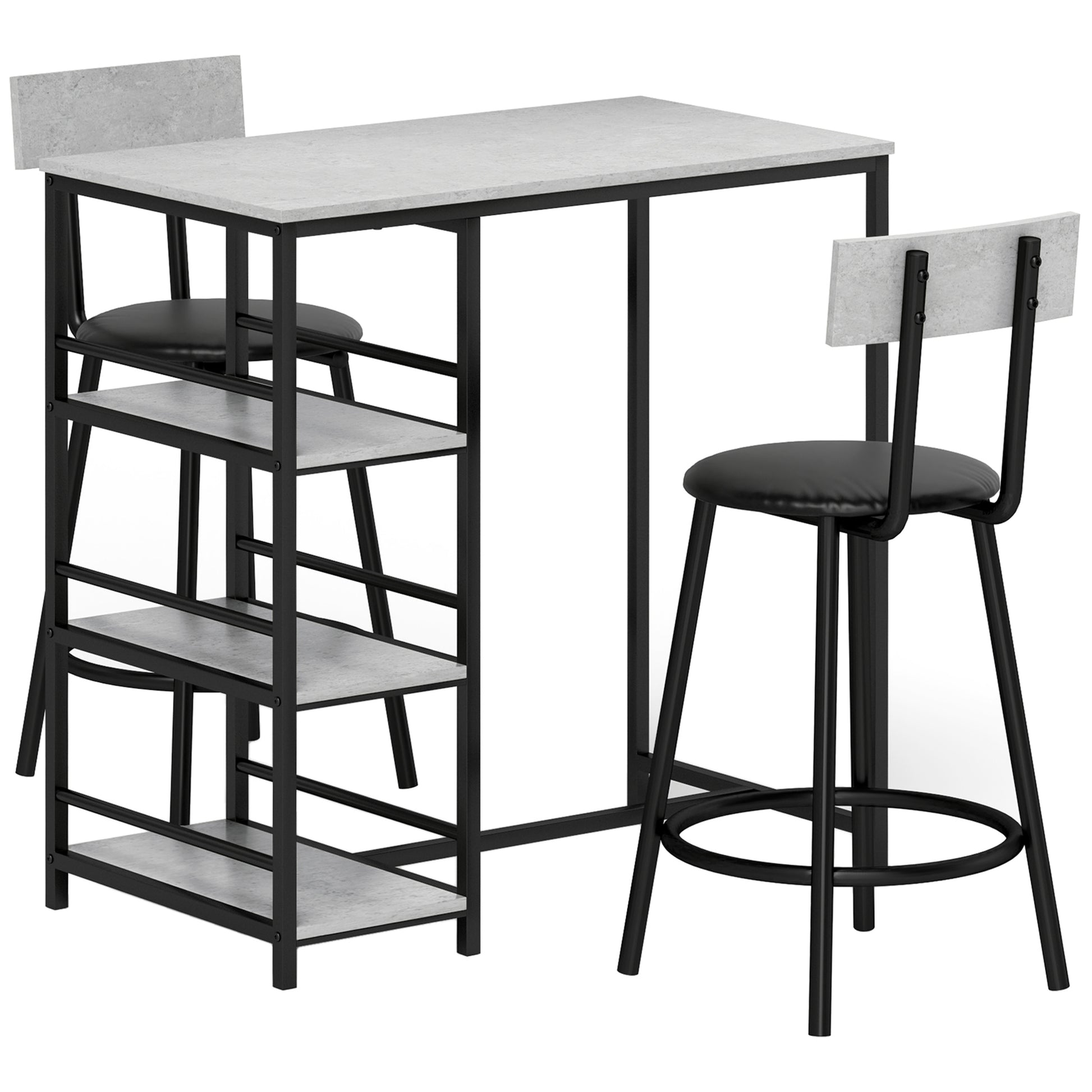 HOMCOM High Bar Table Set mat 2 Stühle – Héchst Këssen Tëschten mat Stühlen an Site Reecher, gepolstert Sëtz an Foussréck Bar fir Iessen Gréis