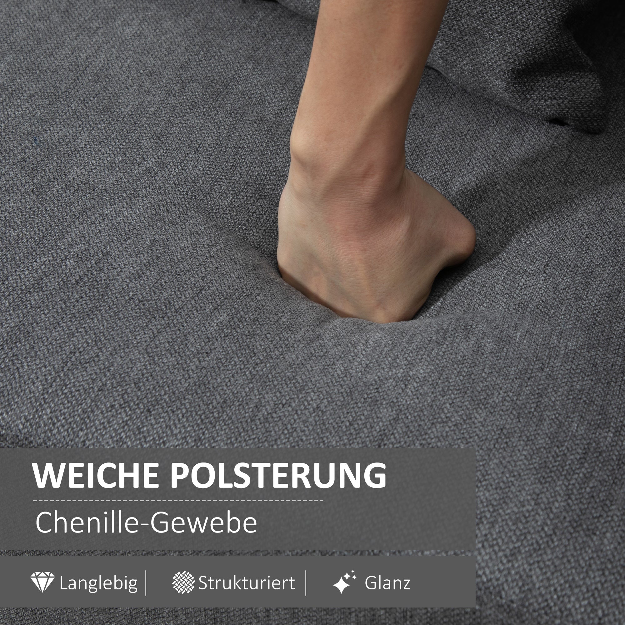 - - Justéierbar Fussstëppele: Solid Gummiholz Been bidden eng stabil Basis fir d'Sofa. D'includéierten justierbaren Fussstëppele suergen dofir dass d'Sofa stabil steet ouni ze wackelen an d'Boden viru Kratzer ze schützen