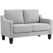 HOMCOM 2-Sëtz Sofabett mat Armlehnen, Déck Polsterung a 2 Këssen, Modernt 2-Sëtz Loveseat mat Holzrahmen fir d'Liewenszëmmer, Lounge, a Schlofzëmmer, Hellgréis