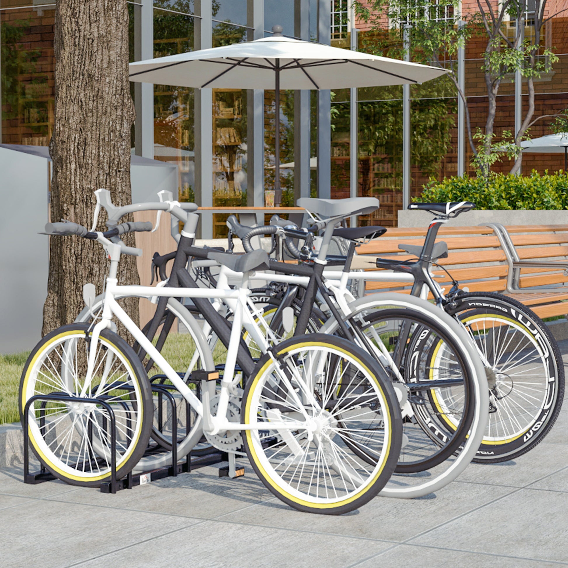 HOMCOM 5-Bike Rack - Stëmmungssystem fir bis zu 5 Vëloen mat engem Maximum vun 6,5 cm breet Réifen (145L x 33W x 27H cm) - Schwaarz Stol
