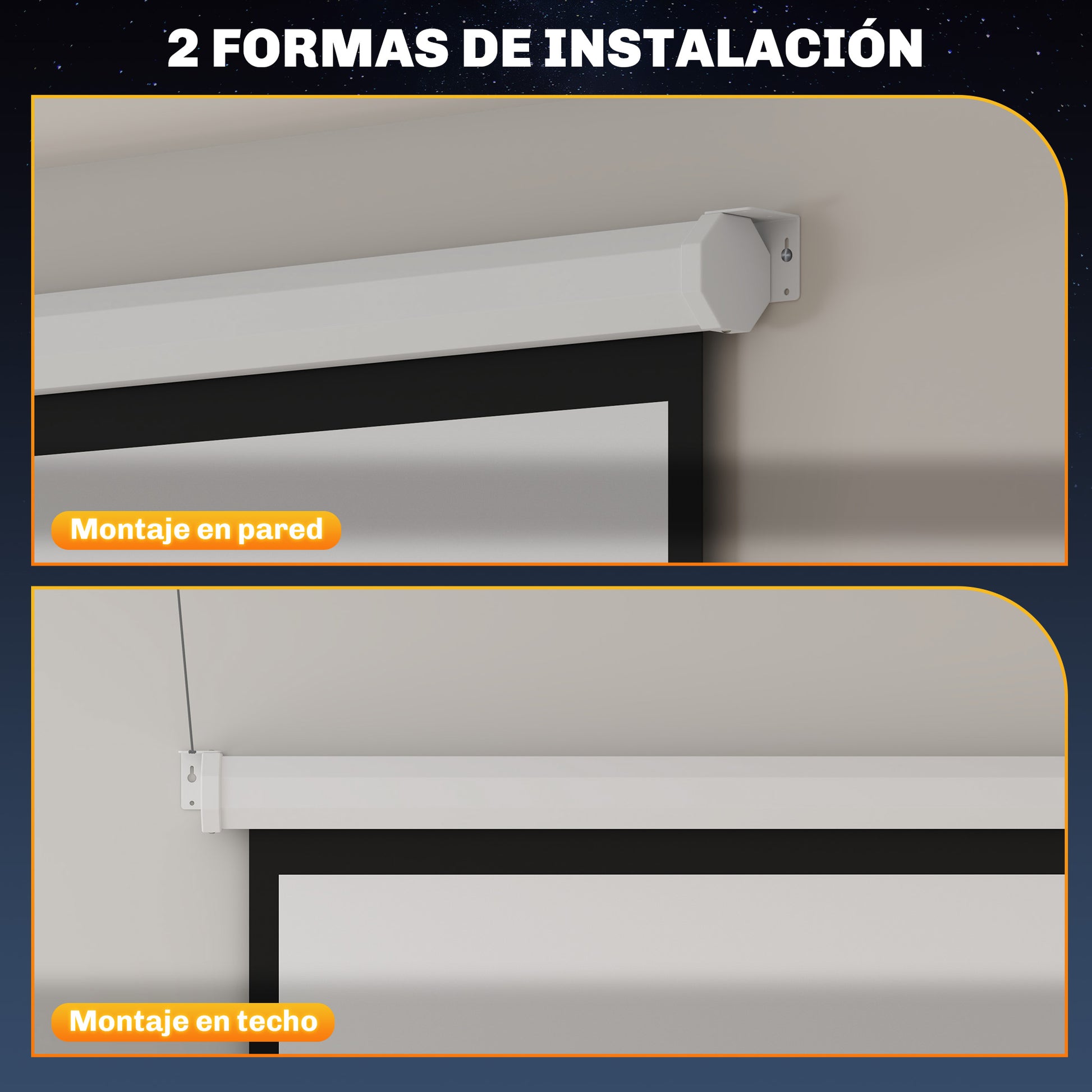 - - VERSATILE INSTALLATION: Ideal fir op Mauer an Decken ze montéieren, passt dësen portablen Projektiounssscreen un ënnerschiddlech Ëmfelder un, wat Iech verschidde Installatiounsoptiounen ubitt.