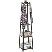 HOMCOM Buedem Mäntel Rack mat 8 Haken, 3 Regaler an engem Mënsch-Design fir Entrée, Schlofzëmmer an Wunnzëmmer, 34x34x170 cm, Rustik Braown