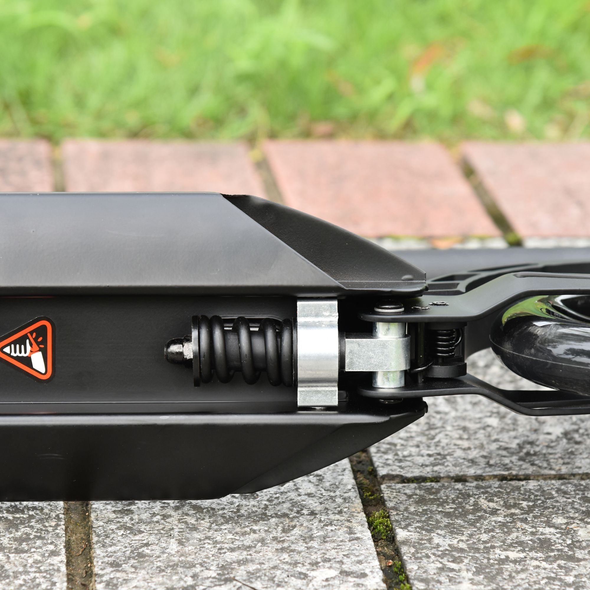 - - DIMENSION: Gesamt Dimensione: 94x38x90-105cm (LxWxH), gefalt Dimensione: 84x38x35cm (LxWxH), Max Iwwerliewenskapazitéit: 100kg. Wichteg Informatioun: Gitt op dat déi momentan Reiden mat engem Scooter nëmmen op privéierte Grundstücker erlaabt ass. Et ass verbueden op ëffentlech Stroossen a Gehweeër.