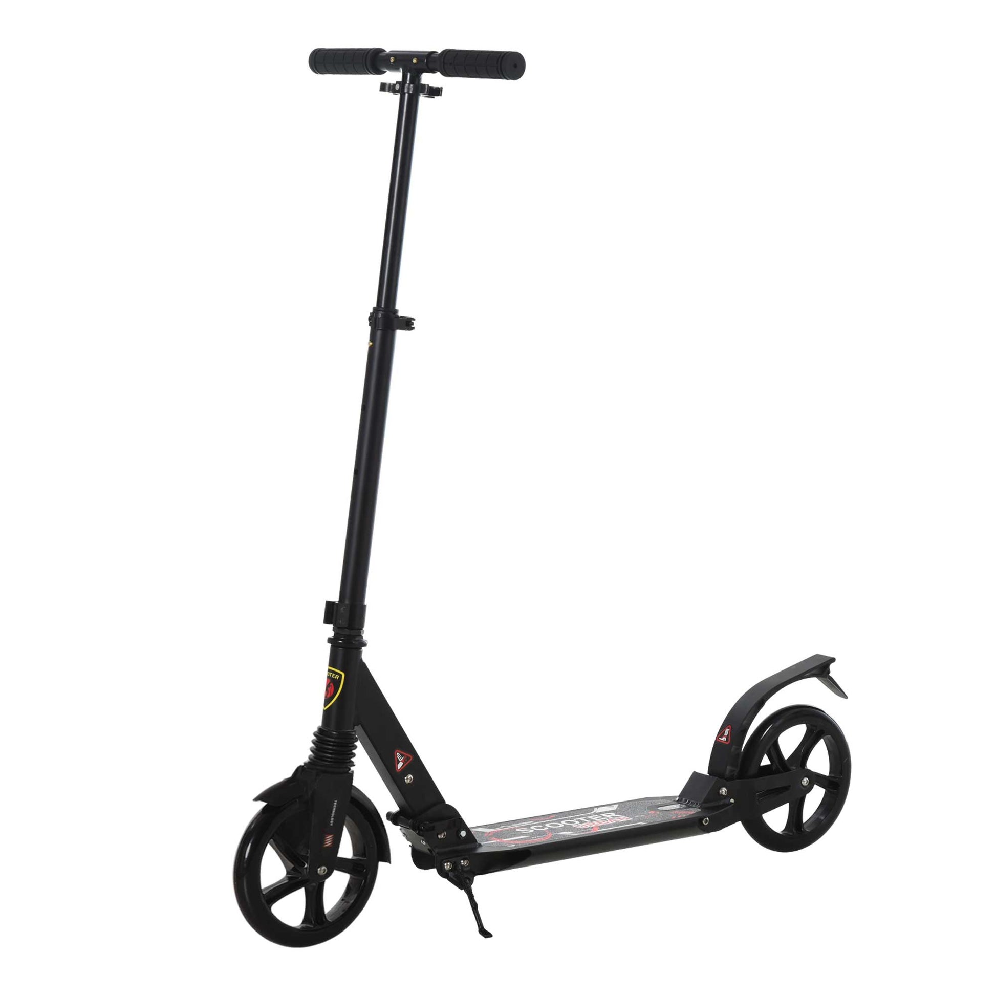 HOMCOM Faltbare Scooter mat einstellbare Hoechstbar, liichte Scooter fir Erwuessener a Kanner (iwwert 14 Joer) Skateboard-Typ mat grousse 200mm Rieder, Aluminium Iwwerliewenskapazitéit 100kg