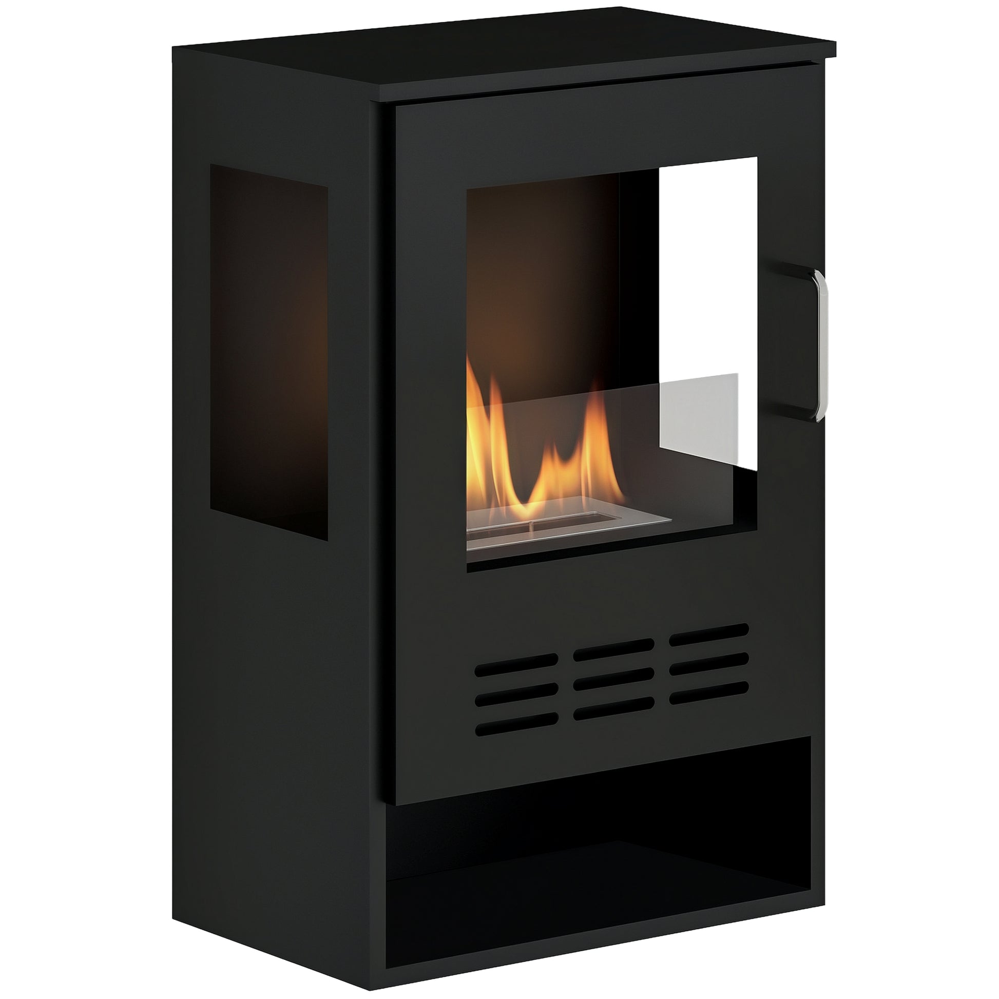 HOMCOM Freestanding Bioethanol Kamin mat 0,9L Brenner fir eng Dauer vun 3,3 Stonnen, Stol a Glas Kamin, Ethanol Kamin iwwer 20㎡, 44x28x68 cm, Schwaarz