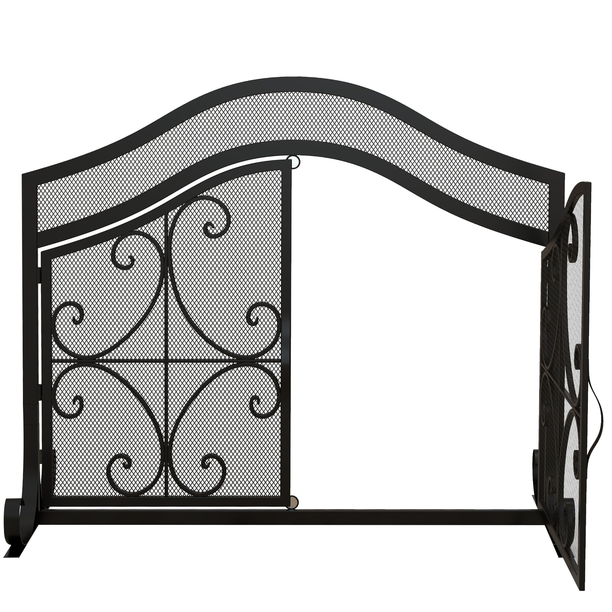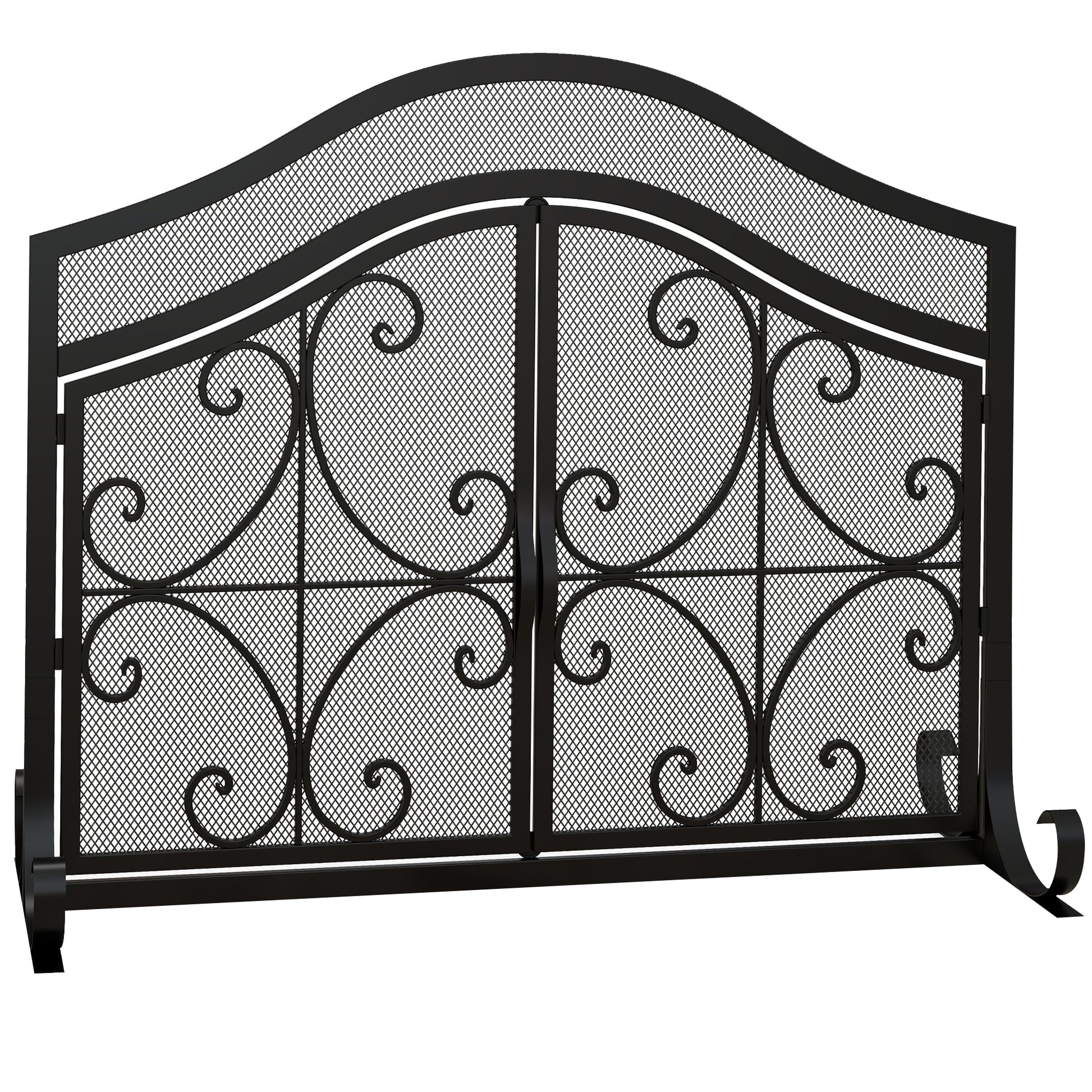 - - Stylish Design: Dës Kaminschirm huet en déif olutzende Muster an e Stolrahmen mat engem gebogenen Deckel, deen d'Aesthetik vum Kamin elegant verbessert.