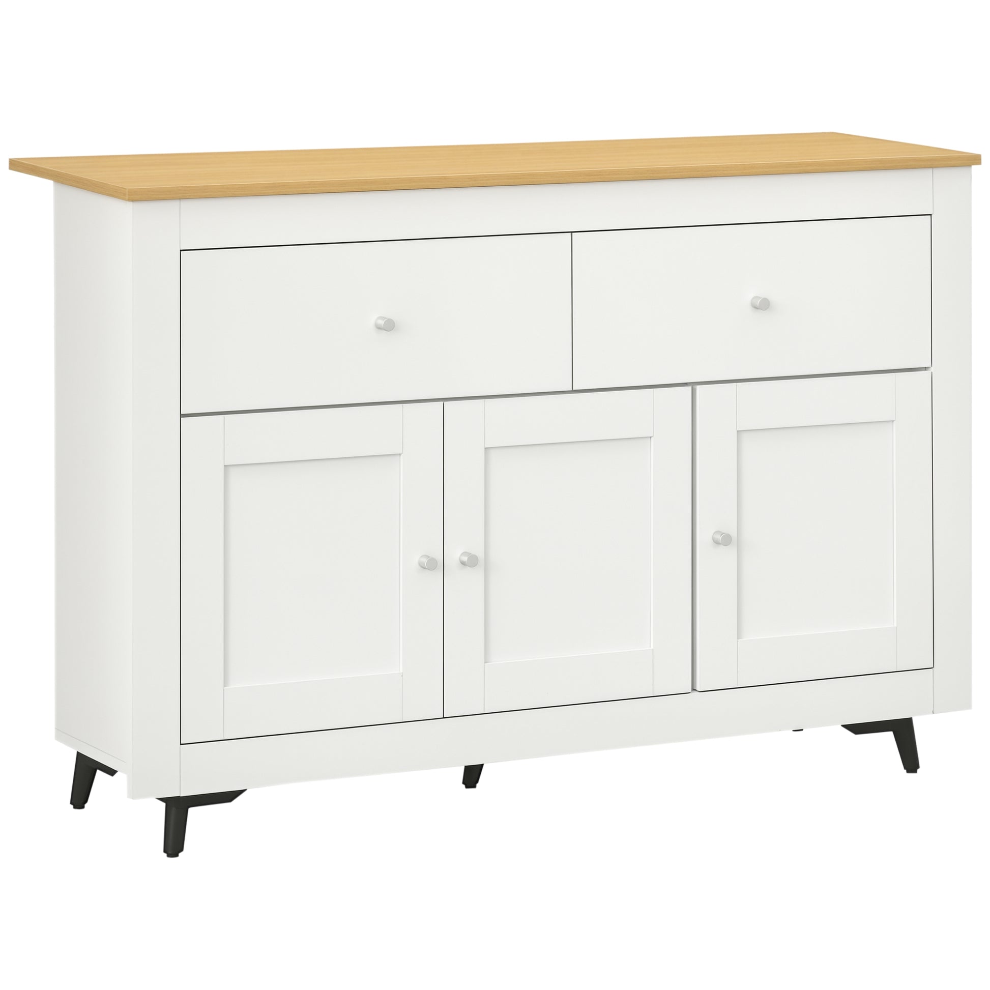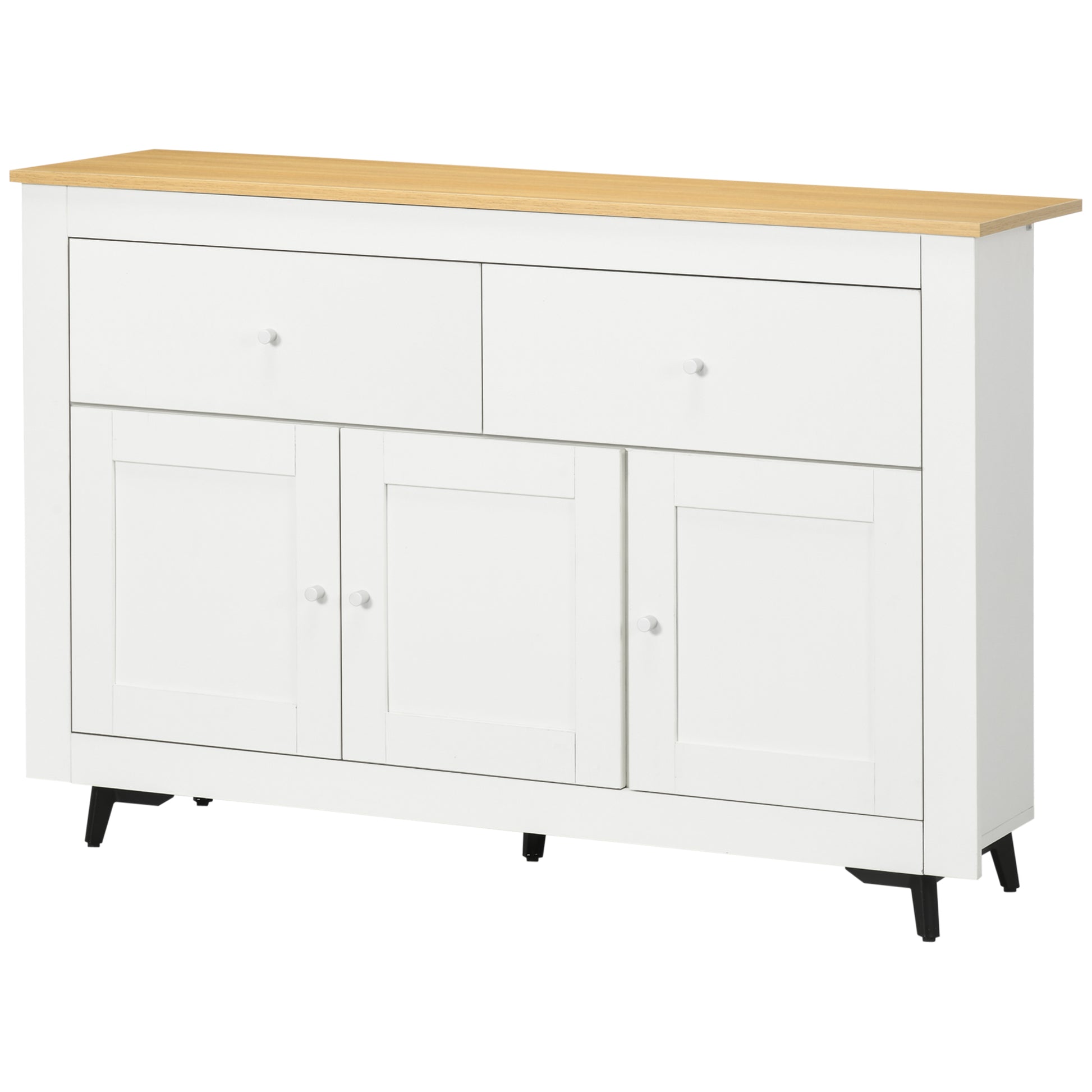 HOMCOM Kichen Sideboard - Kichen Zousatzmöbel TV Stänn mat 2 Schafe, 3 Dieren a Justéierbaren Regal fir Dinnermëbel oder Wunnzëmmer 117x35x80 cm Wäiss