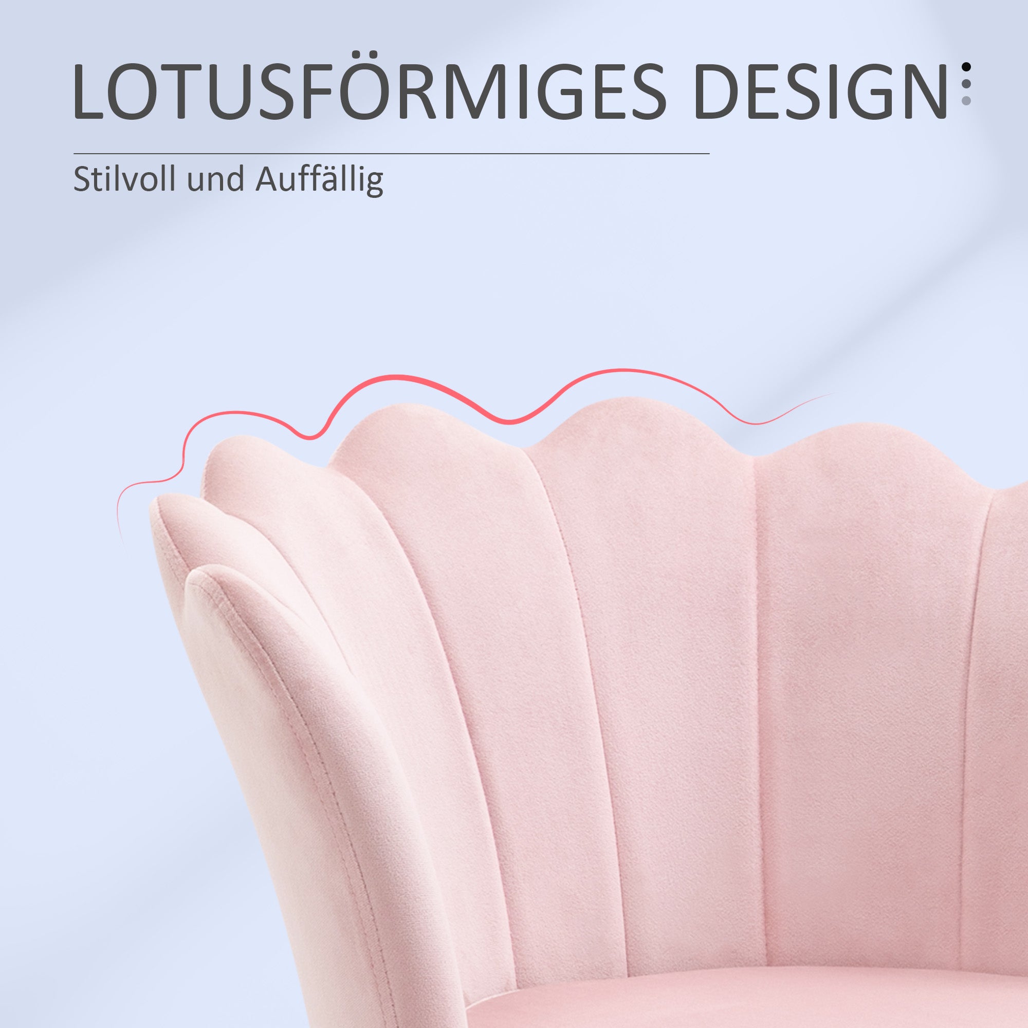 HOMCOM Sëtze mat Lotus-förmendem Design - Gepolstert mat Metalleger, Velvet Look, Einzelstull fir d'Schlofzëmmer, Rose