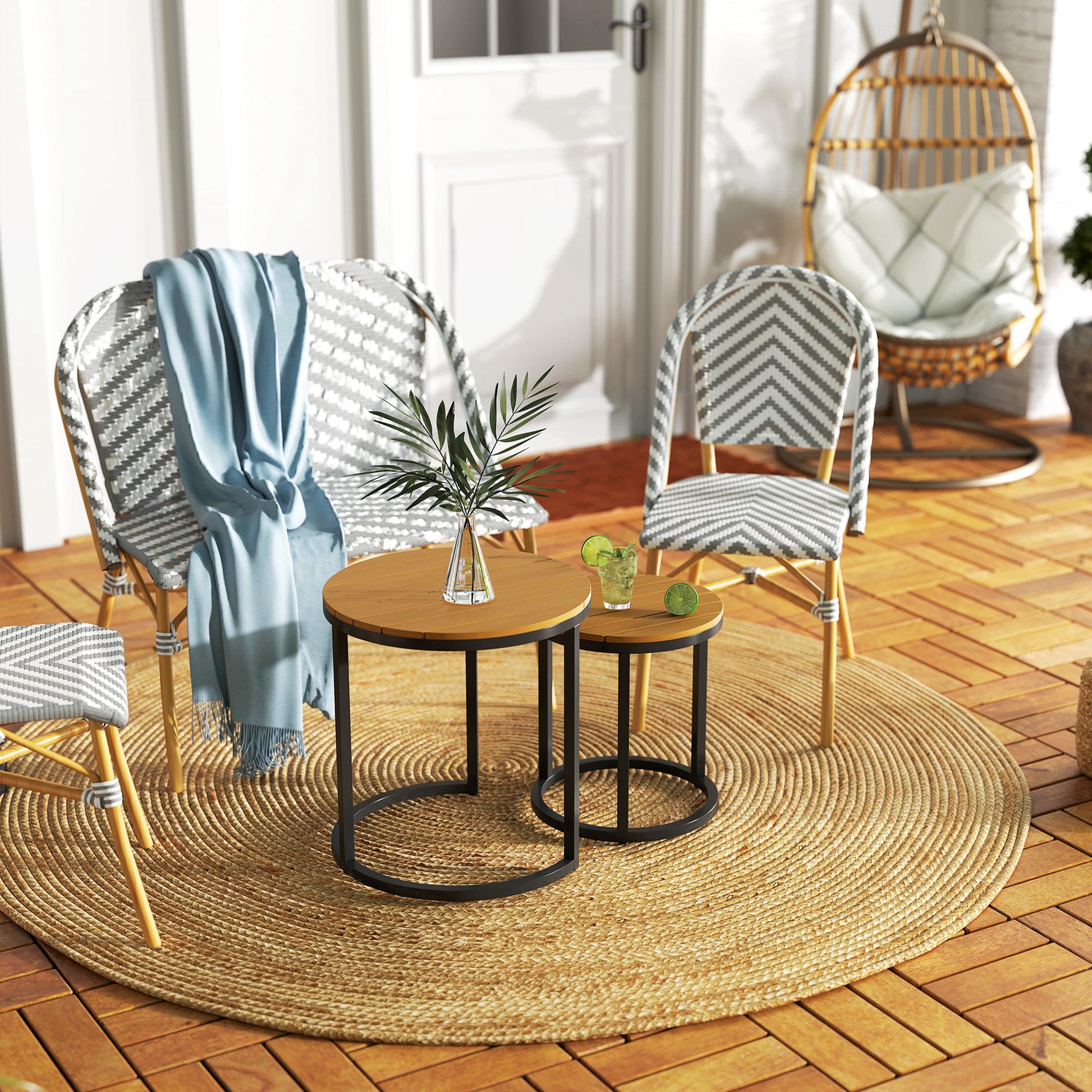 - - KOMPAKT DESIGN: Maacht Ären Raum maximal mat dësen zwou nestbare Gaardentischen. Gebrauchen se separat oder stapelen se fir plazspuerend oder eng eenzegaarteg an funktionell Layout ze maachen