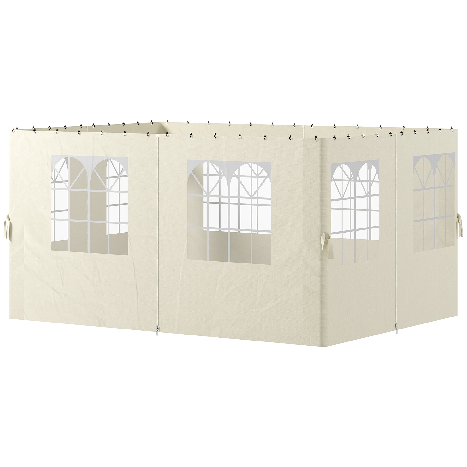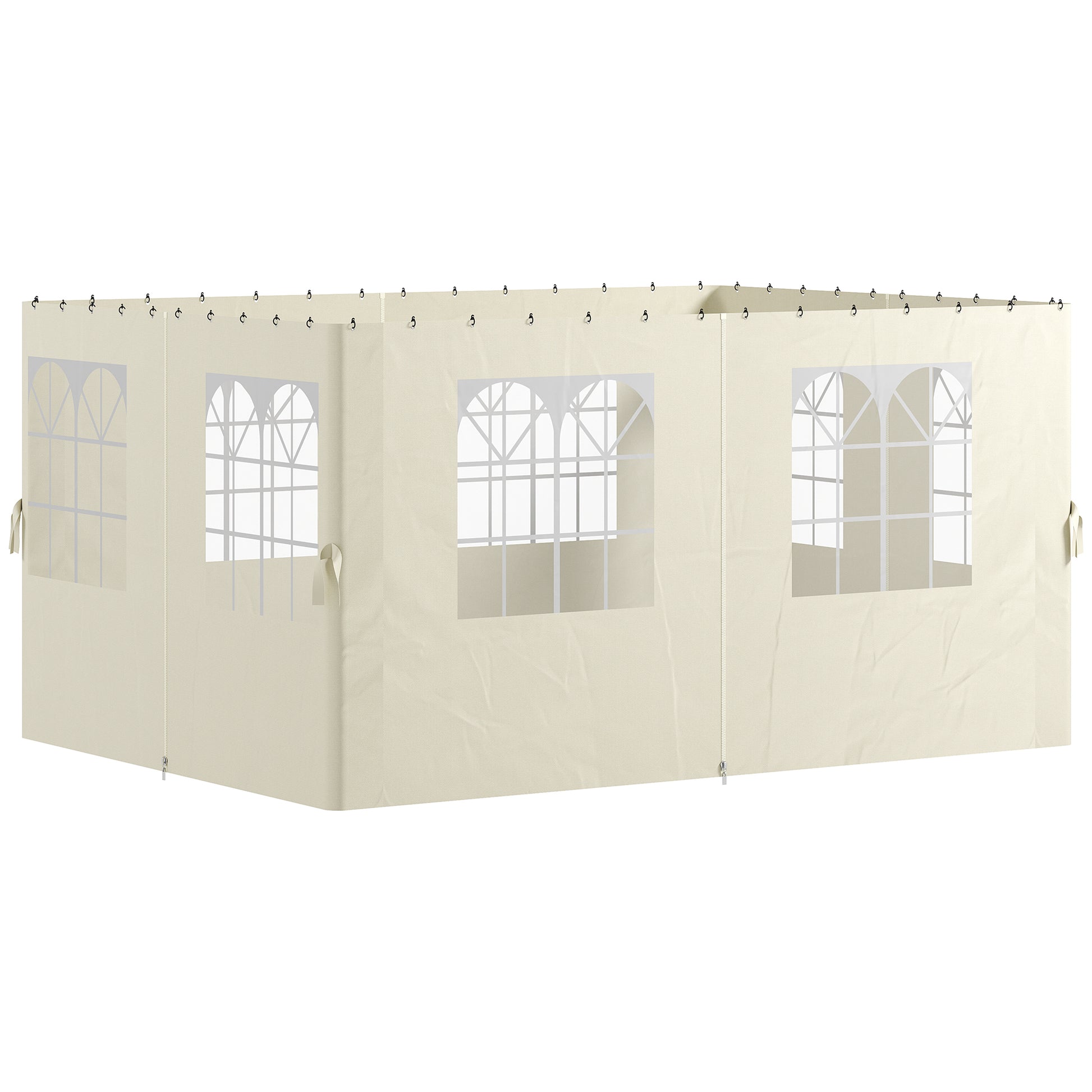 Outsunny 4 Säitenmaueren fir Gazebo 3x4 m Canopy Säiten mat Haken 8 Fënsteren UV-Protection Ersatz Säit fir Outdoor Gardeparty Crème